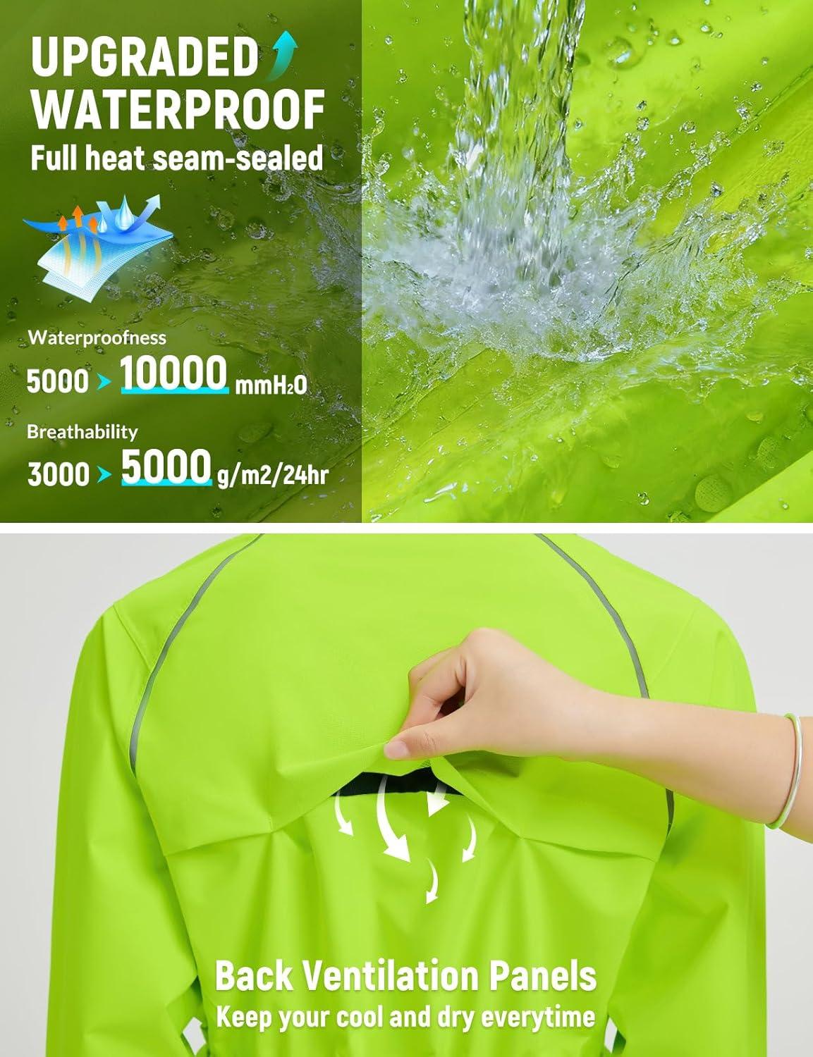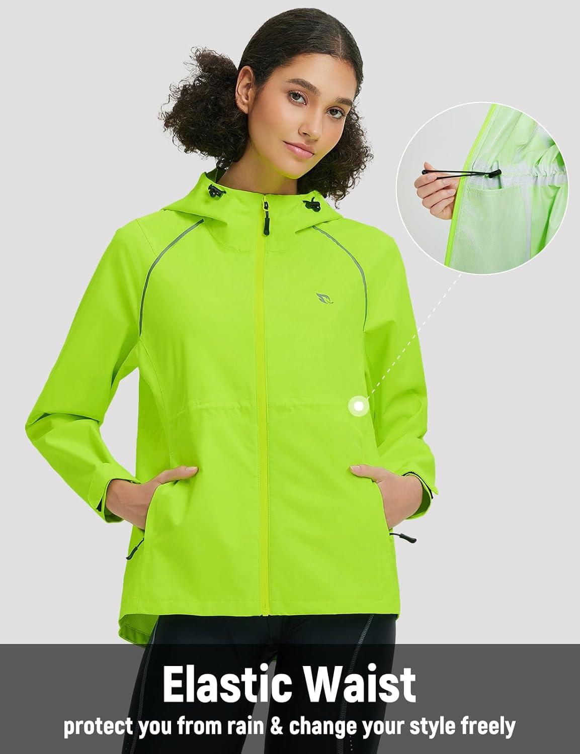 imagebaleaf Womens Rain Jackets Waterproof Windbreaker Packable Lightweight Cycling Running Jacket Hiking Gear Reflective HoodedFluorescent Green