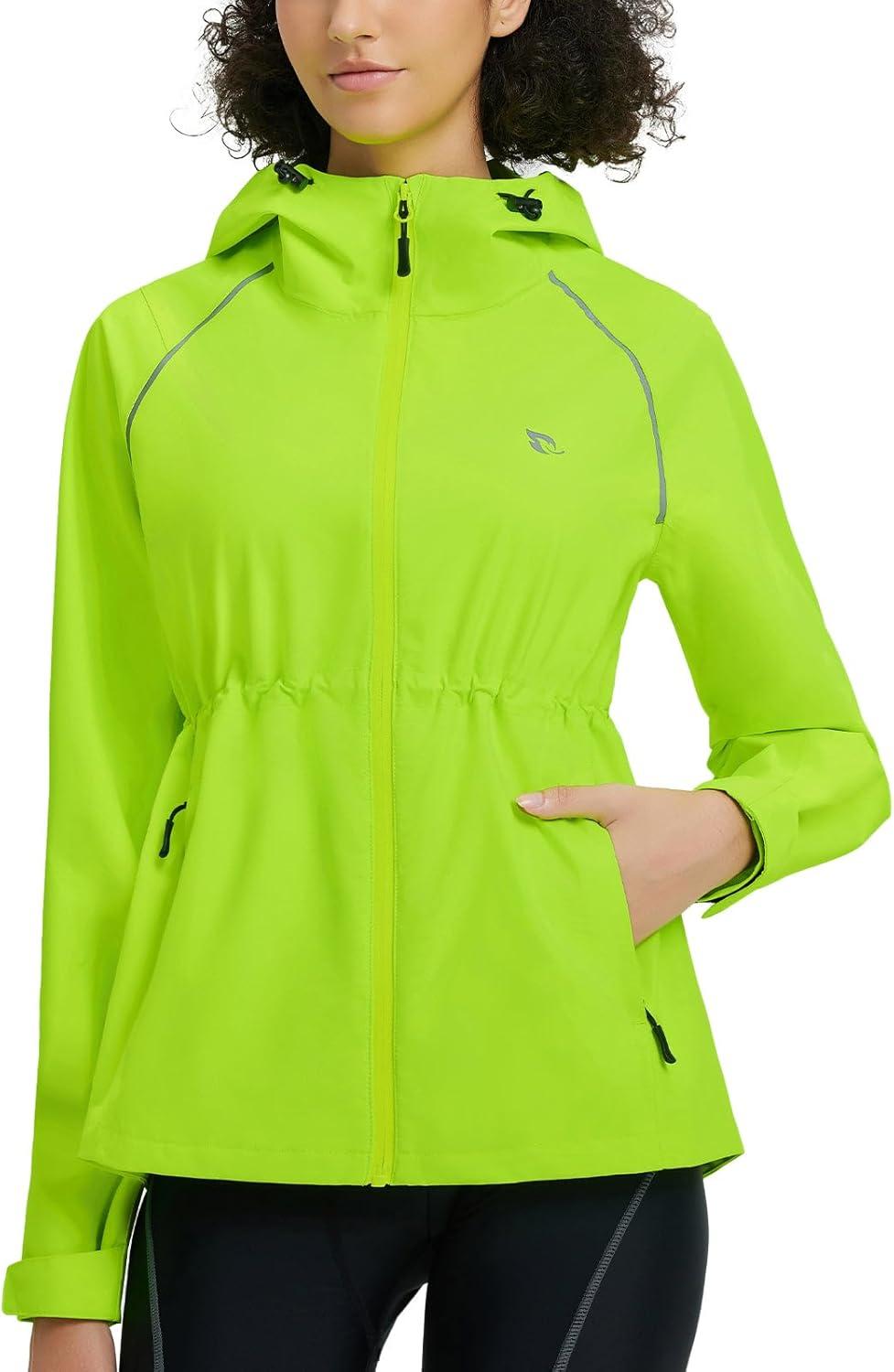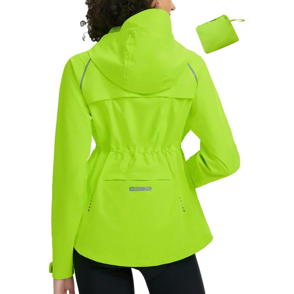 baleaf Women's Rain Jackets Waterproof Windbreaker Packable Lightweight Cycling Running Jacket Hiking Gear Reflective Hooded(Fluorescent Green)