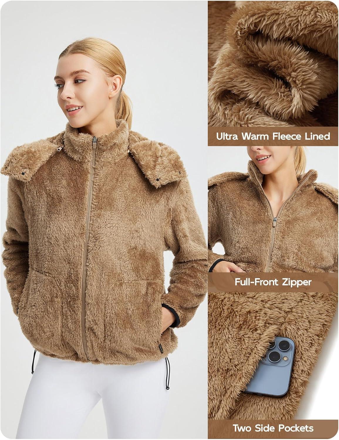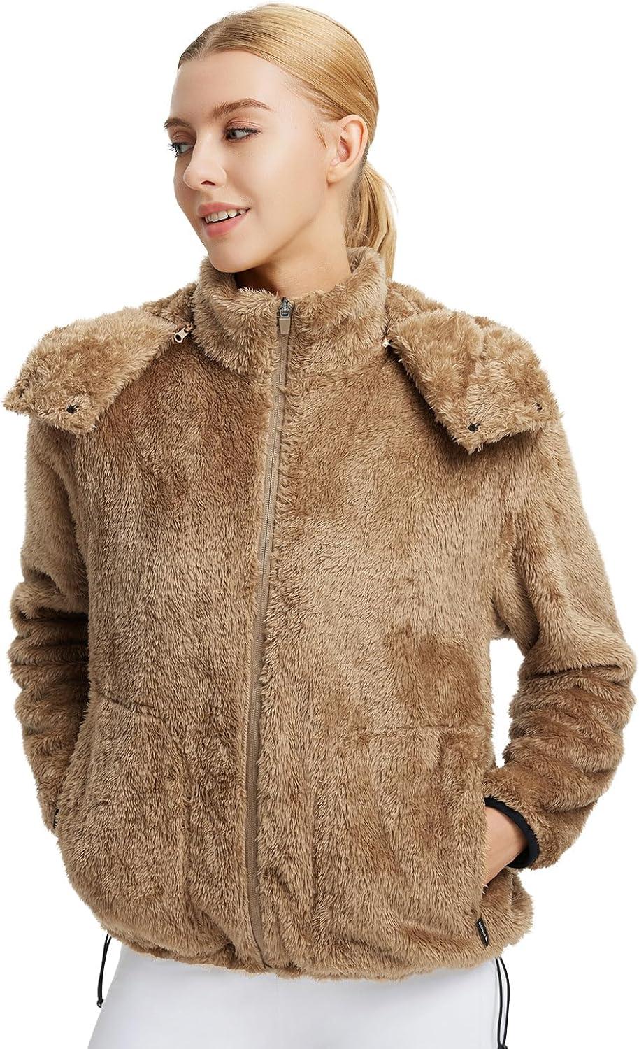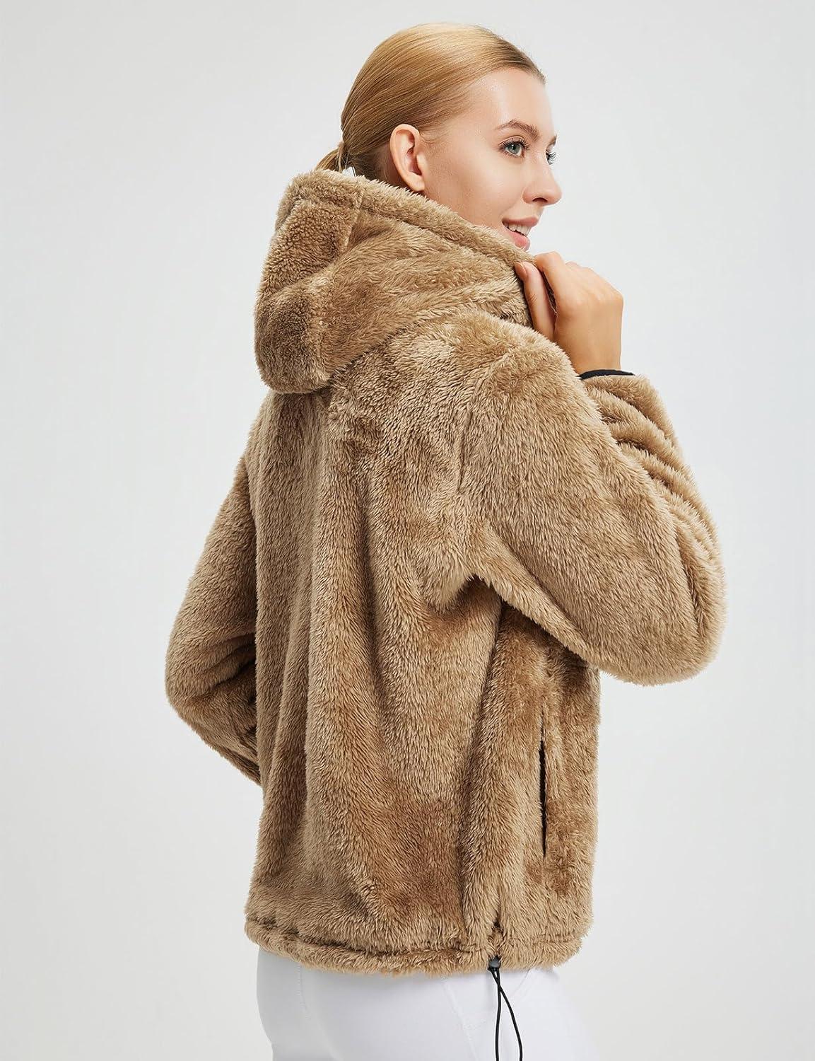 baleaf Womens Sherpa Fuzzy Fleece Jakcets with Hood Button Down Drawstring Winter Casual Warm Coat with Pockets(Brown)
