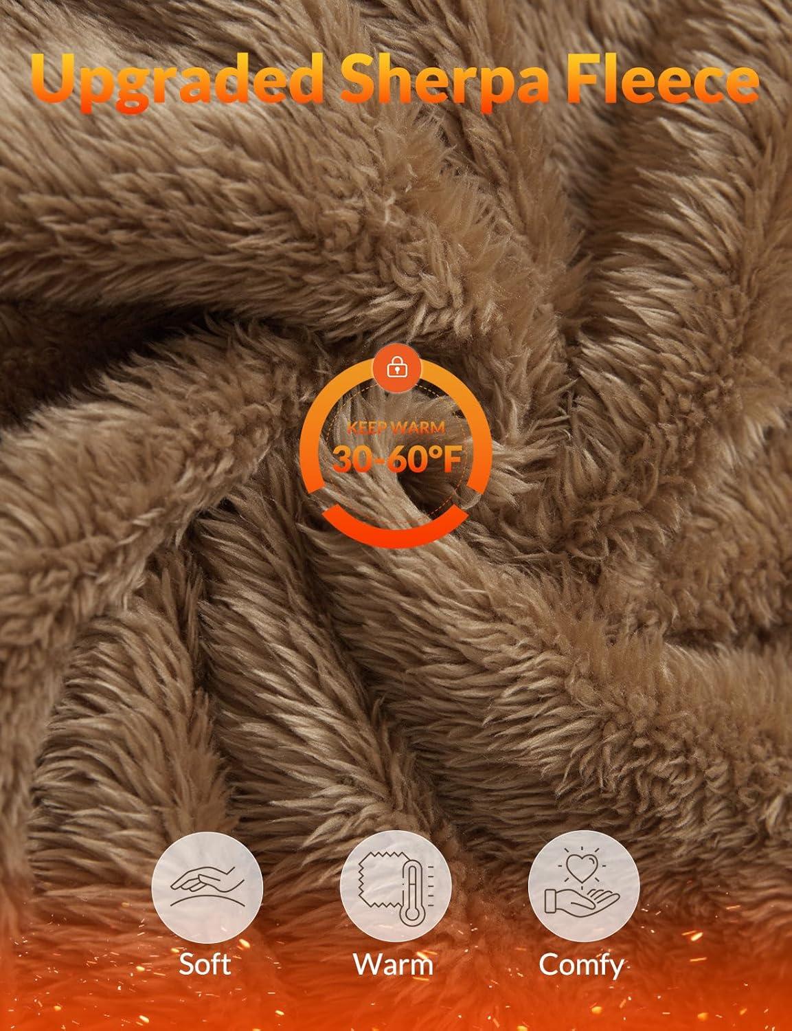 imagebaleaf Womens Sherpa Fuzzy Fleece Jakcets with Hood Button Down Drawstring Winter Casual Warm Coat with PocketsBrown