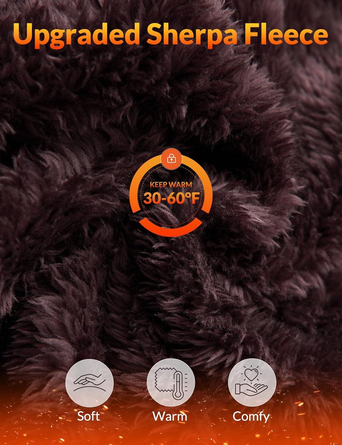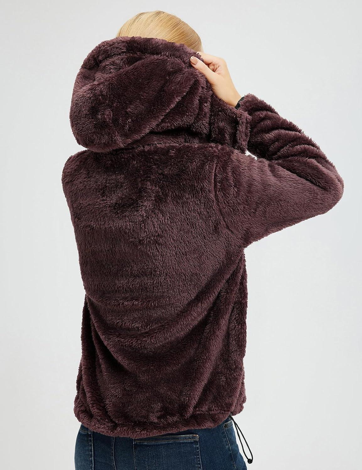 imagebaleaf Womens Sherpa Fuzzy Fleece Jakcets with Hood Button Down Drawstring Winter Casual Warm Coat with PocketsDark Brown