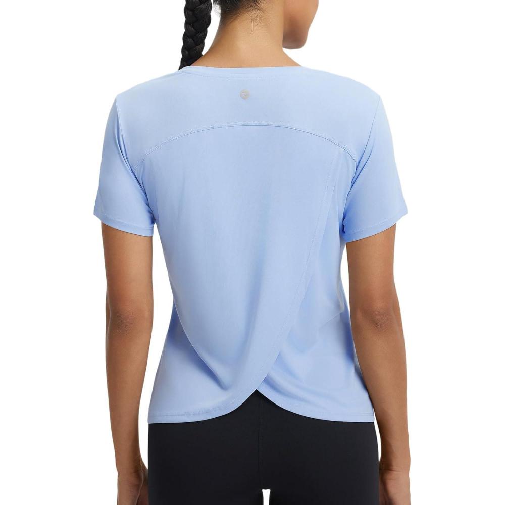 imagebaleaf Womens Short Sleeve Workout Shirts Athletic Tops Sun Protection Breathable TShirts Quick Dry Gym Running TennisLight Blue
