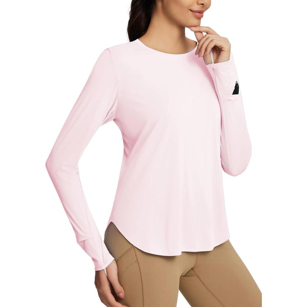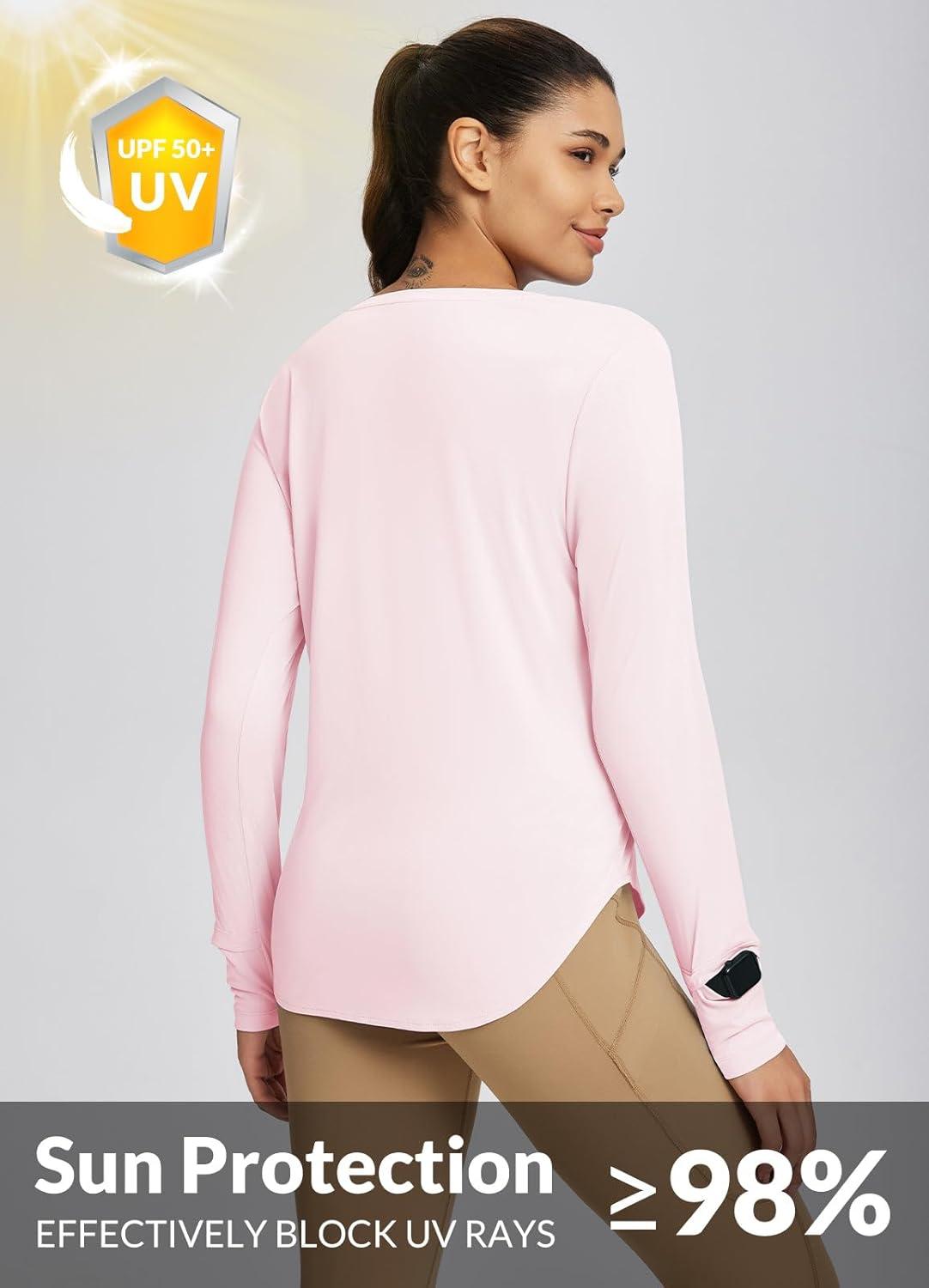BALEAF Women’s Sun Shirts UPF 50+ Long Sleeve Hiking Tops Lightweight Quick Dry UV Protection Outdoor Clothing(Light Pink)