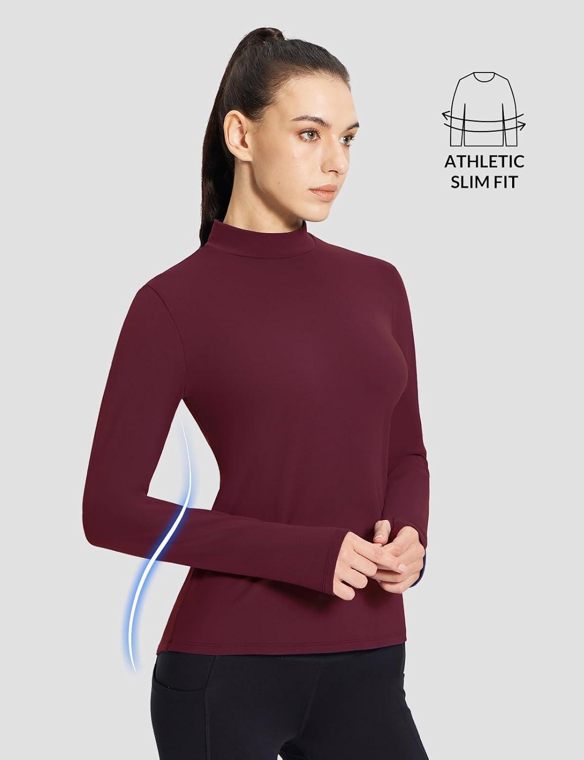 baleaf Women’s Thermal Long Sleeve Shirts Fleece Mock Neck Top Warm Undershirts with Detachable Neck Gaiter Thumbholes(Wine Red)