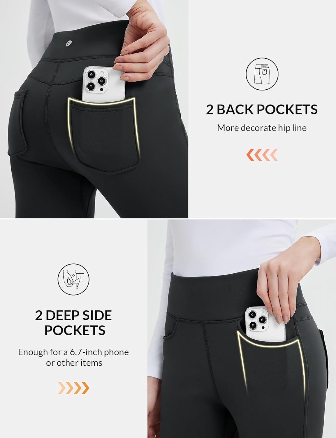 baleaf Women's Thick Fleece Lined Leggings Winter Warm Jeggings Water Resistant High Waisted Tights Snow Pants 4 Pockets(Black)