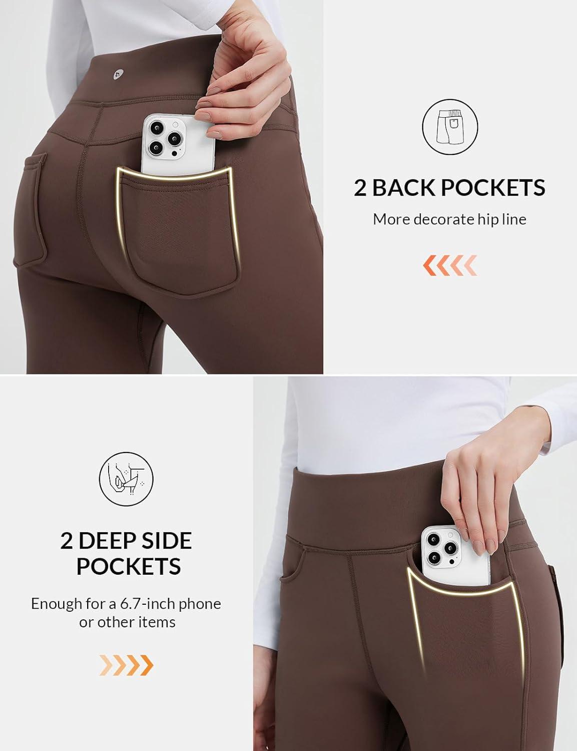 imagebaleaf Womens Thick Fleece Lined Leggings Winter Warm Jeggings Water Resistant High Waisted Tights Snow Pants 4 PocketsDark Brown