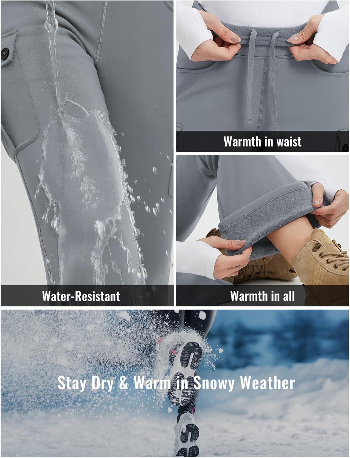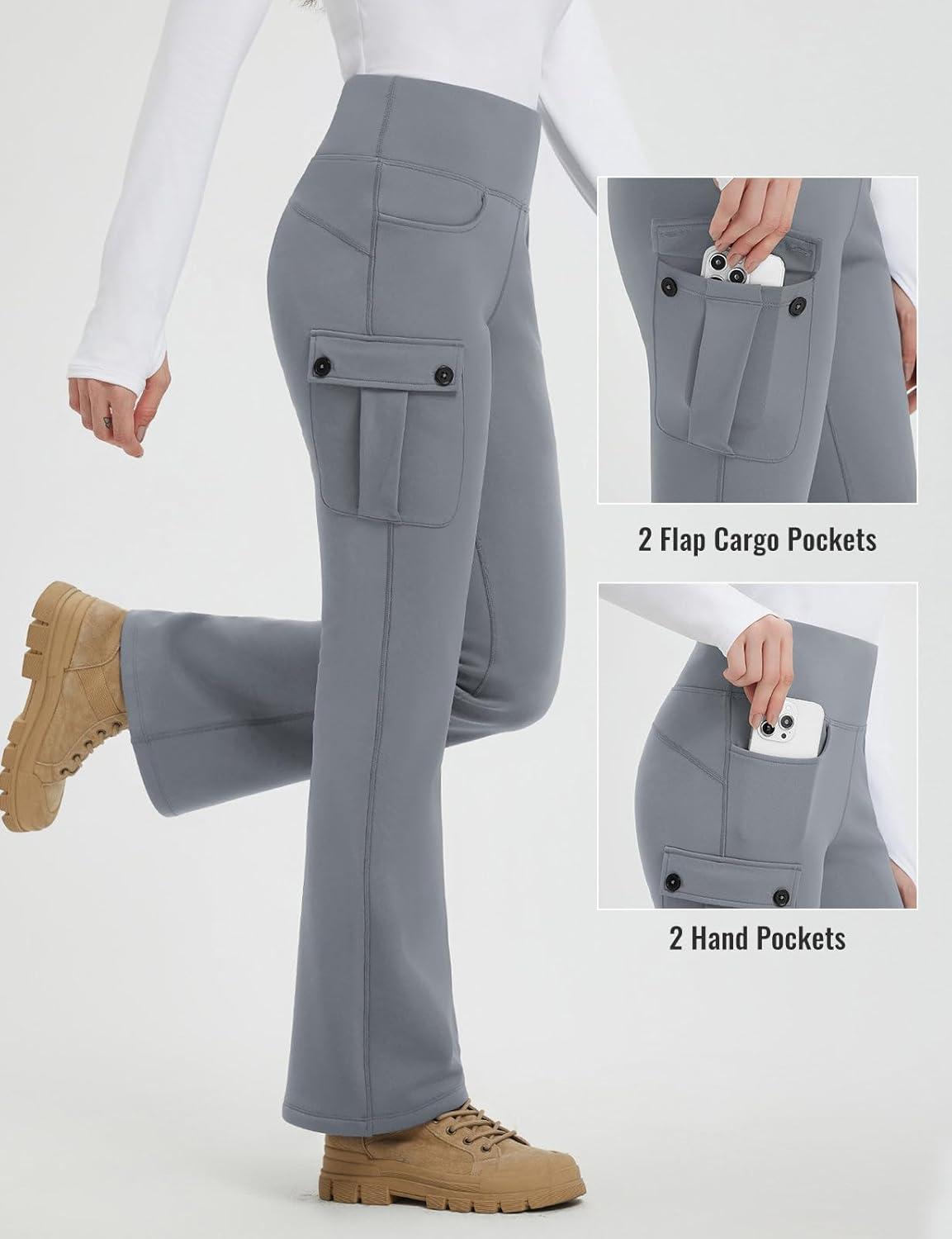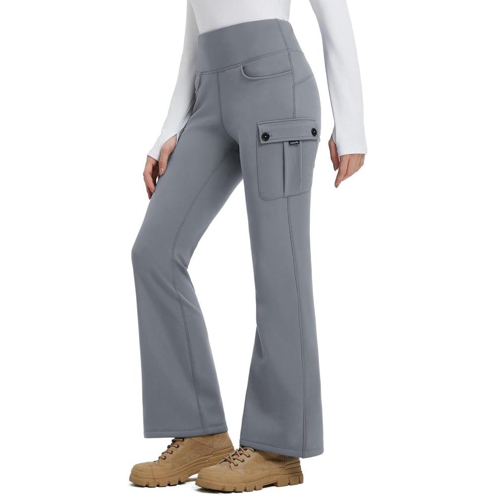 imagebaleaf Womens Thick Fleece Lined Pants Flare Leg Winter Snow Water Resistant Cargo Pockets High Waisted WarmDark Gray