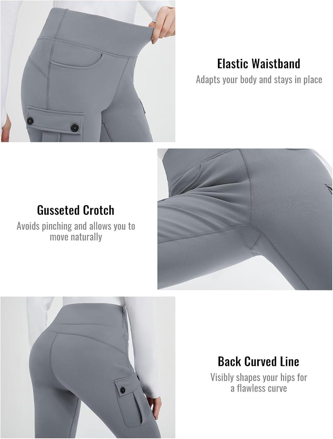 baleaf Women’s Thick Fleece Lined Pants Flare Leg Winter Snow Water Resistant Cargo Pockets High Waisted Warm(Dark Gray)