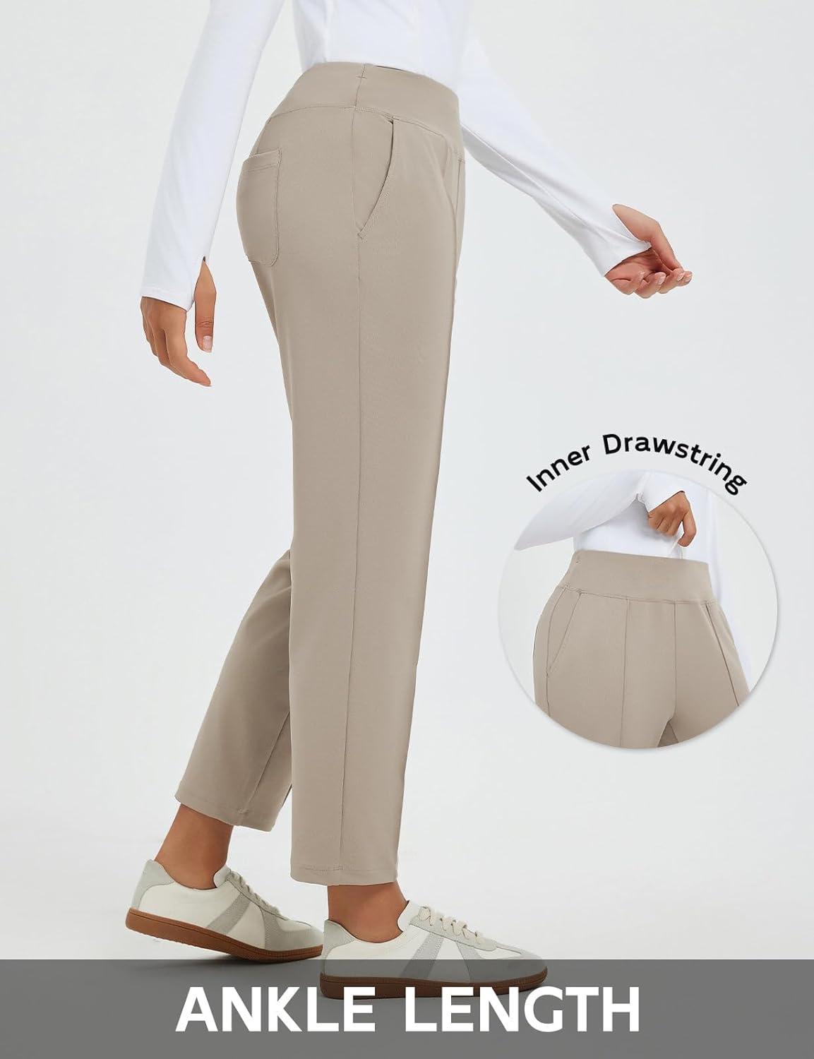 baleaf Womens Travel Pants Stretch Ankle Golf Pants with Pockets Comfy Petite Business Casual Dressy Work Slacks(Khaki)