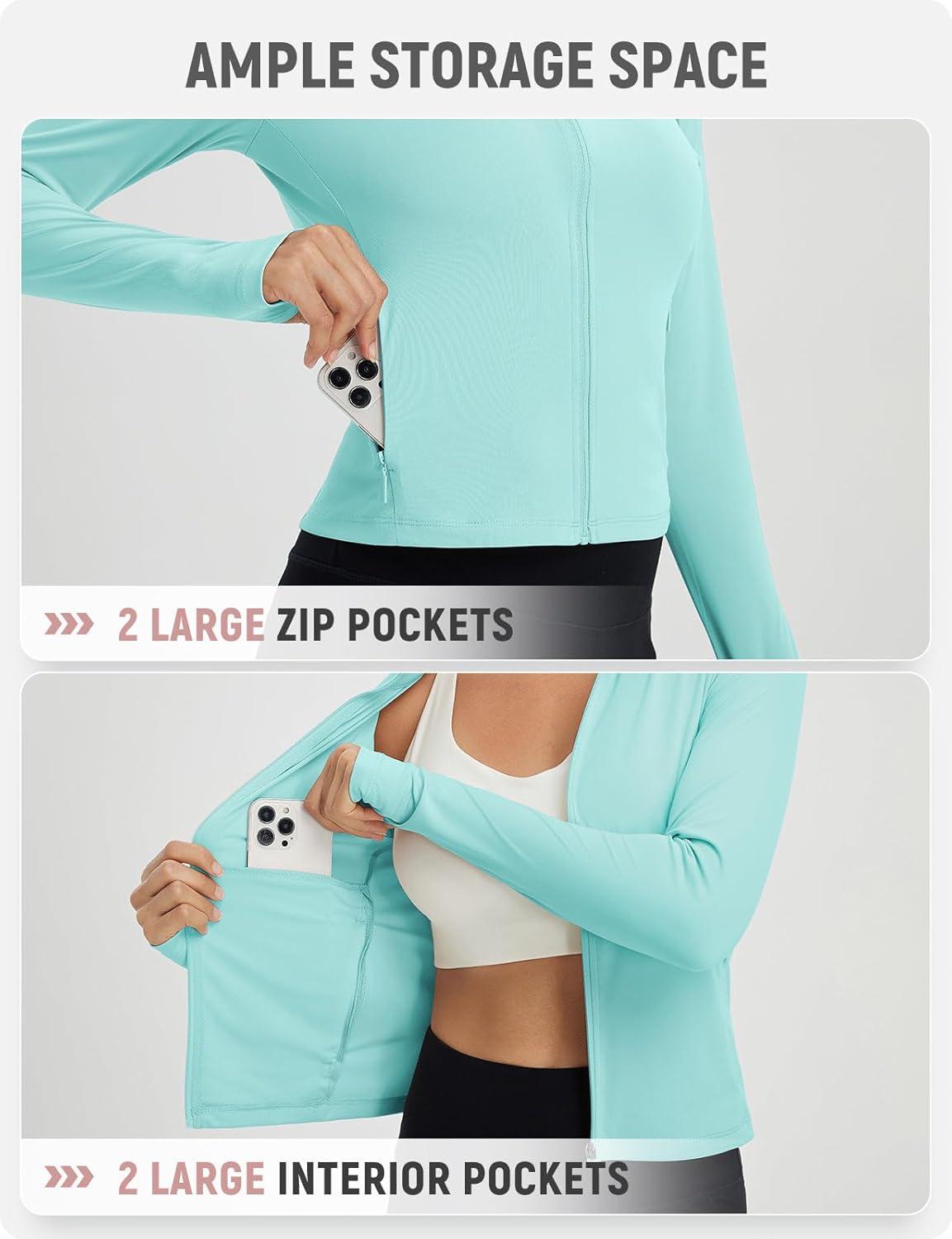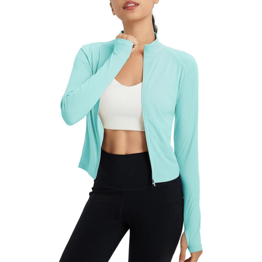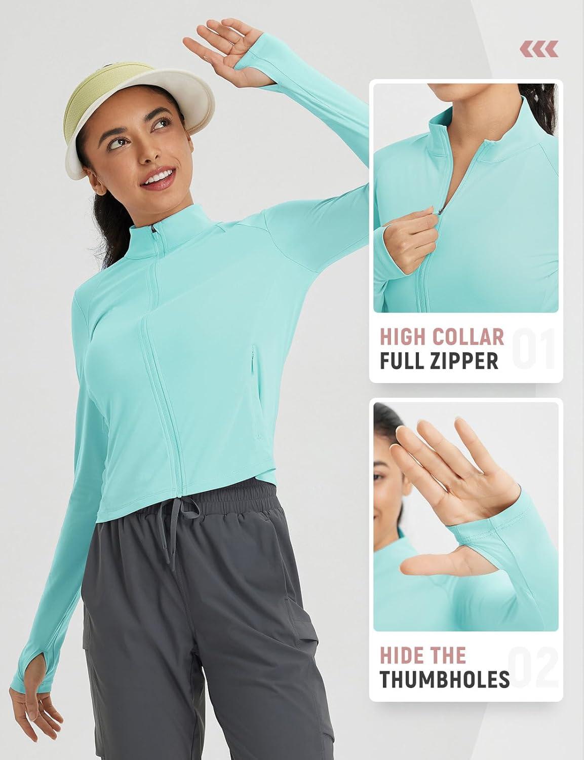 imagebaleaf Womens UPF 50 Sun Shirts Protection SPF Crop Jacket UV Protection Long Sleeve Full Zip Clothing LightweightGreen
