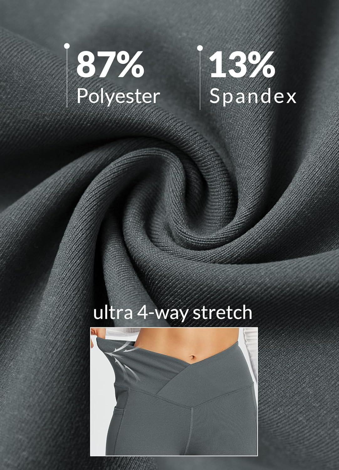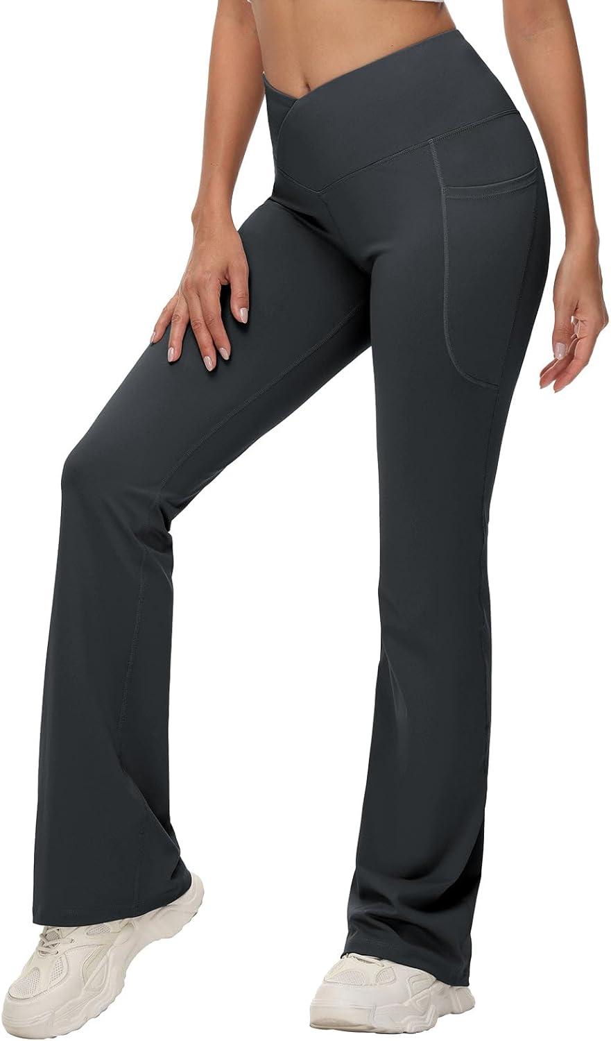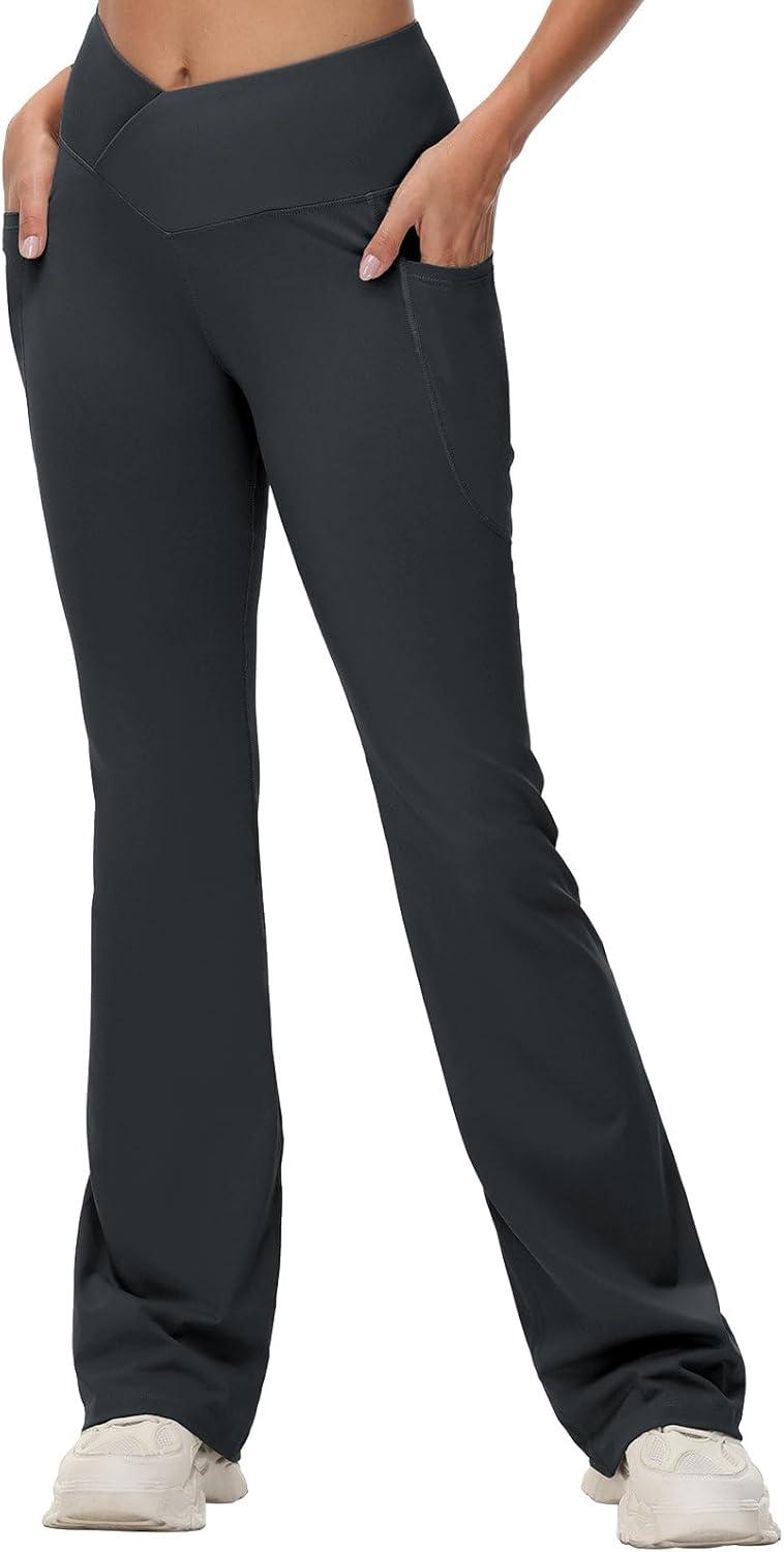 imagebaleaf Womens V Crossover Flare Leggings with Pockets Yoga Pants High Waist Casual Workout Gym Bell Bottom LeggingsDark Grey