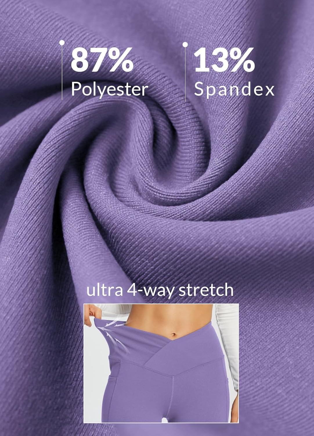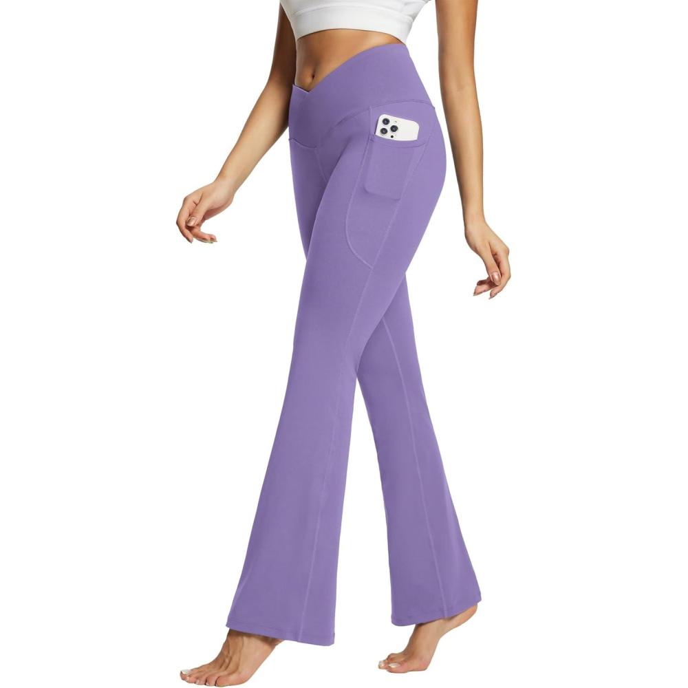 imagebaleaf Womens V Crossover Flare Leggings with Pockets Yoga Pants High Waist Casual Workout Gym Bell Bottom LeggingsPurple