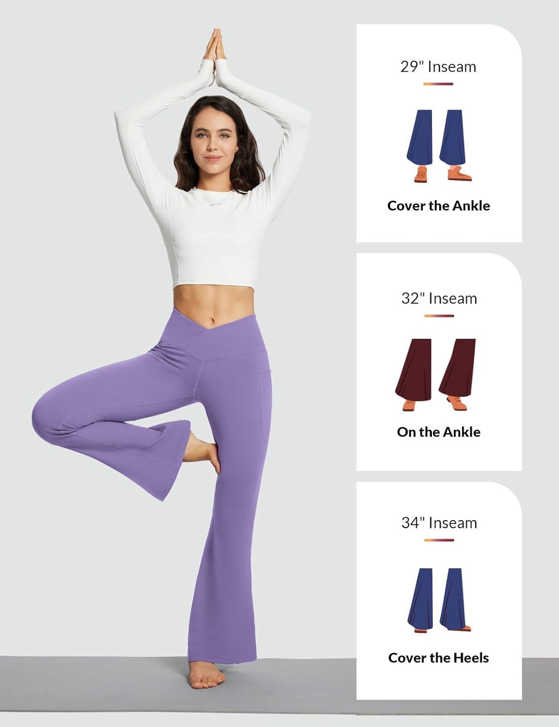 baleaf Women’s V Crossover Flare Leggings with Pockets Yoga Pants High Waist Casual Workout Gym Bell Bottom Leggings(Purple)
