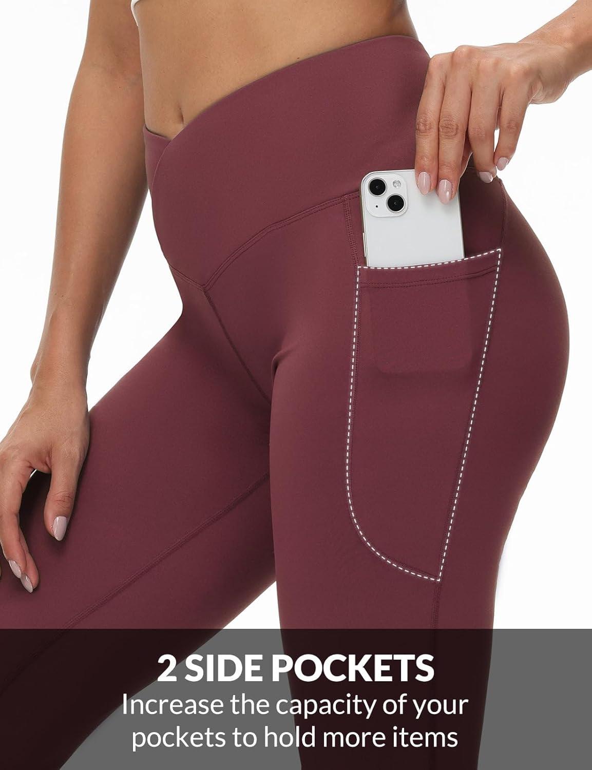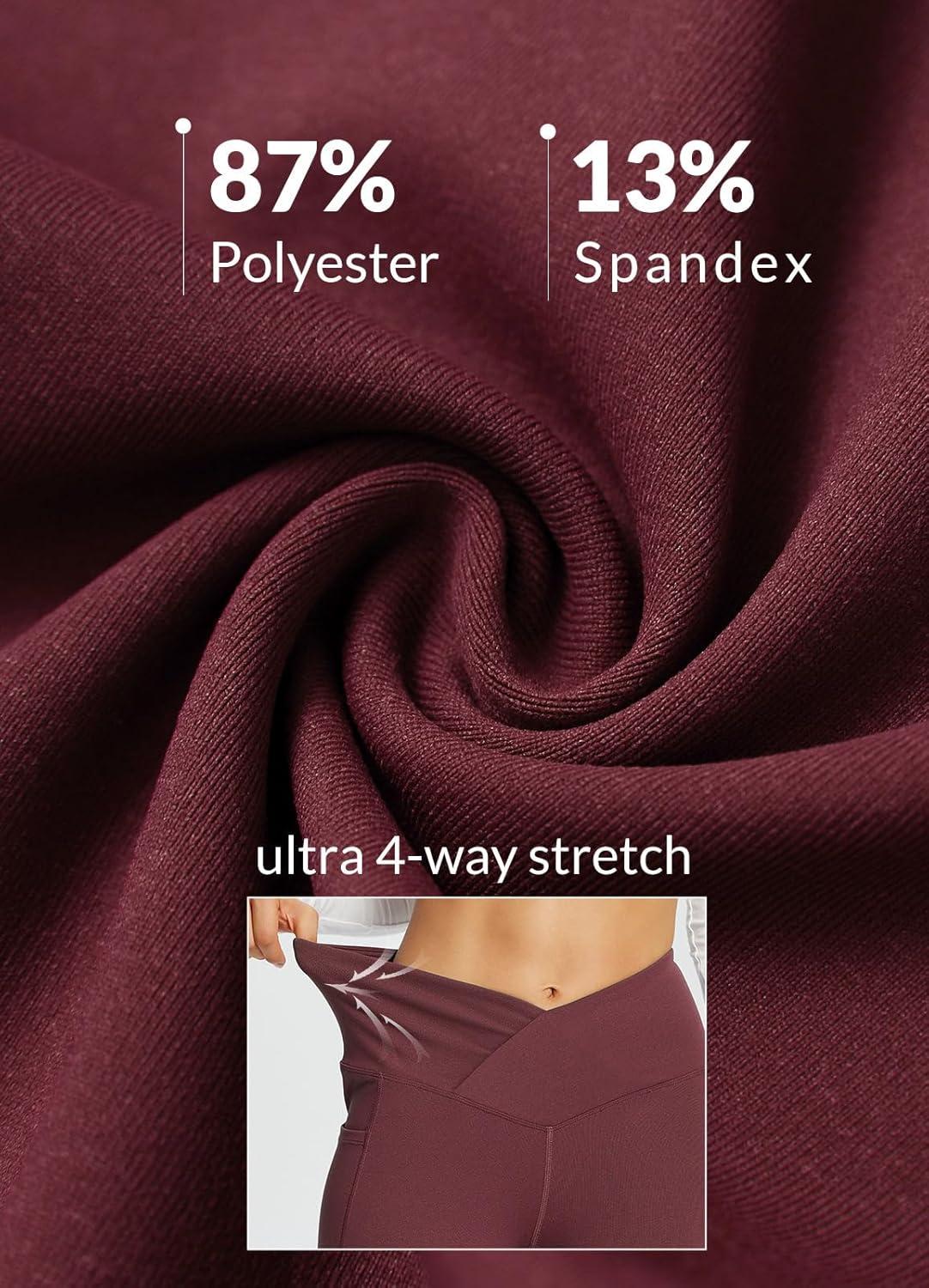 imagebaleaf Womens V Crossover Flare Leggings with Pockets Yoga Pants High Waist Casual Workout Gym Bell Bottom LeggingsWine