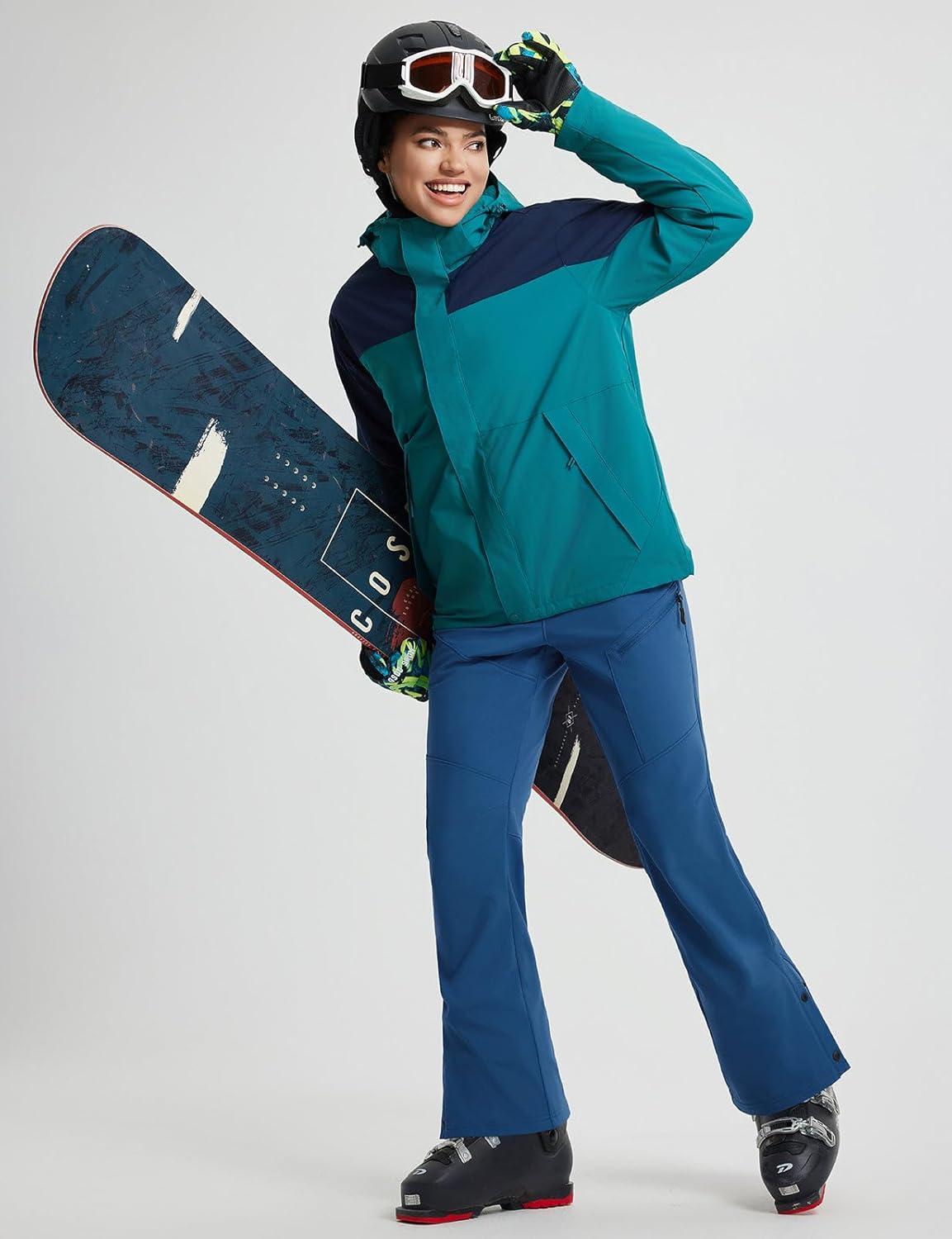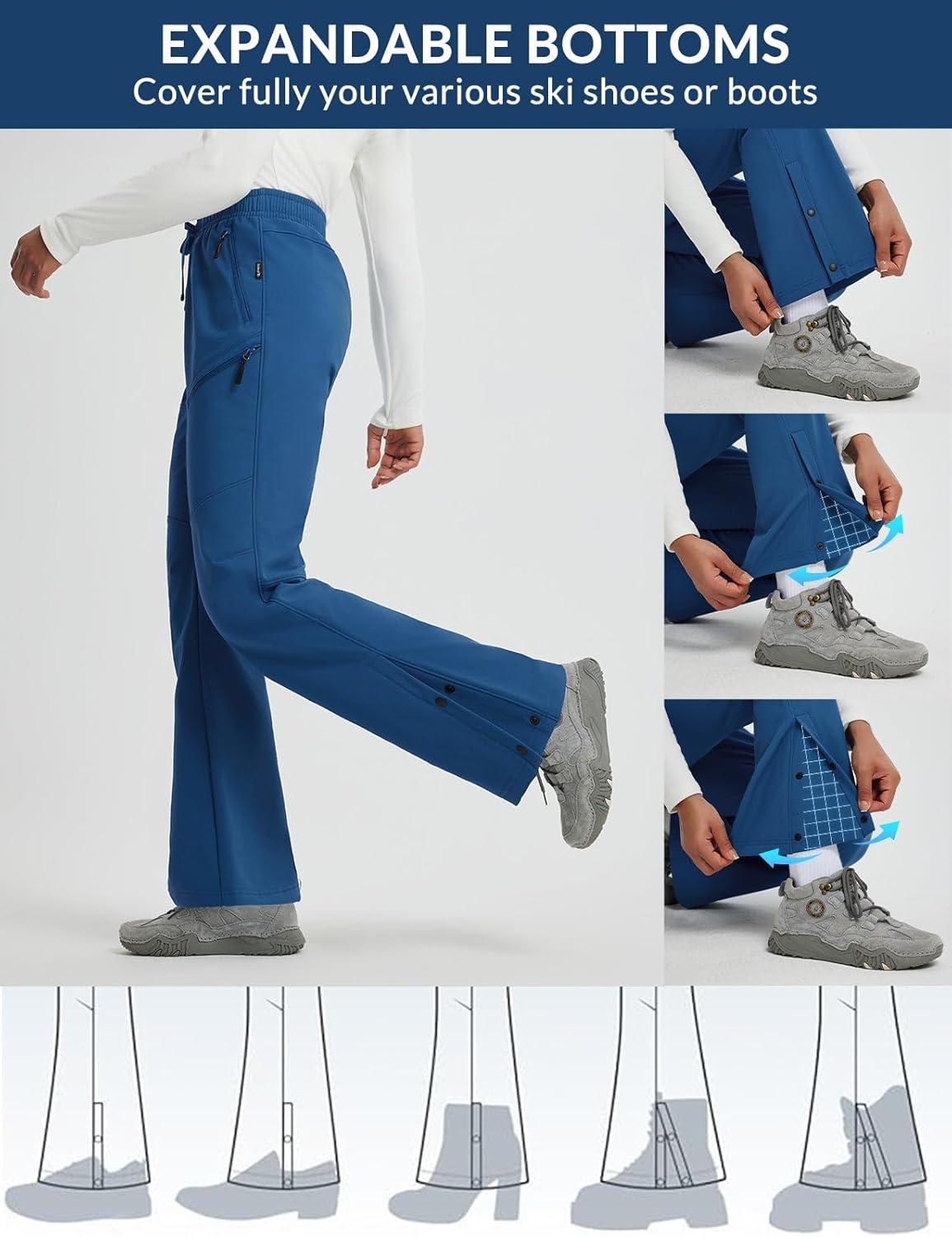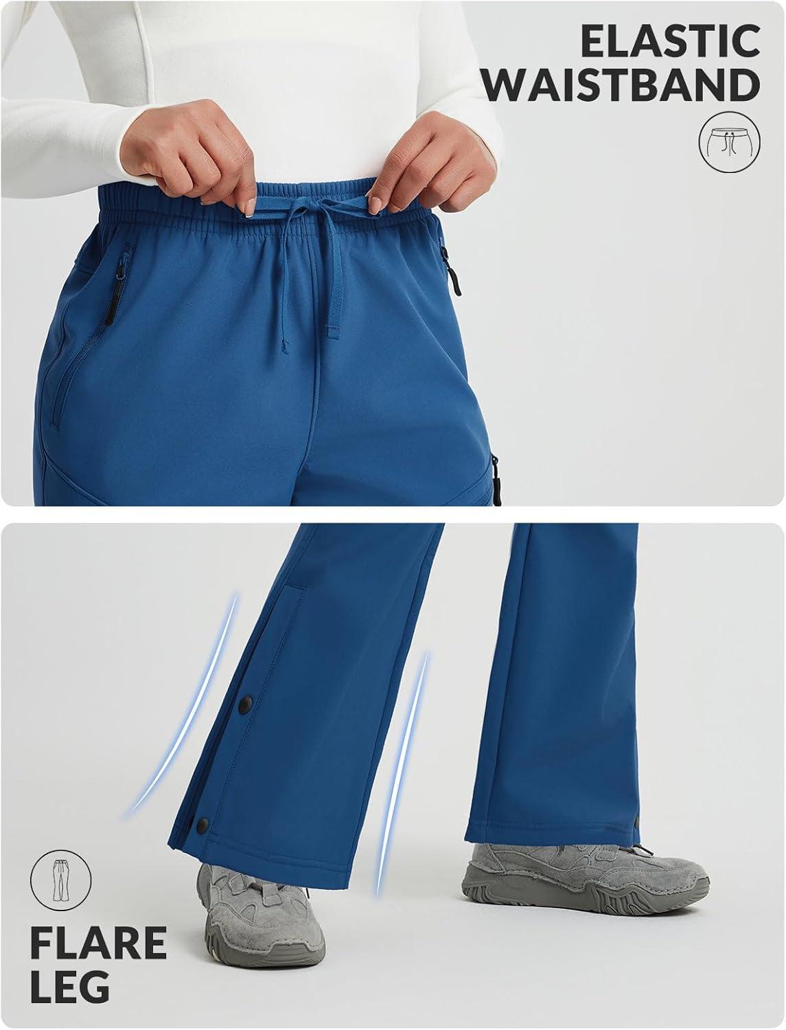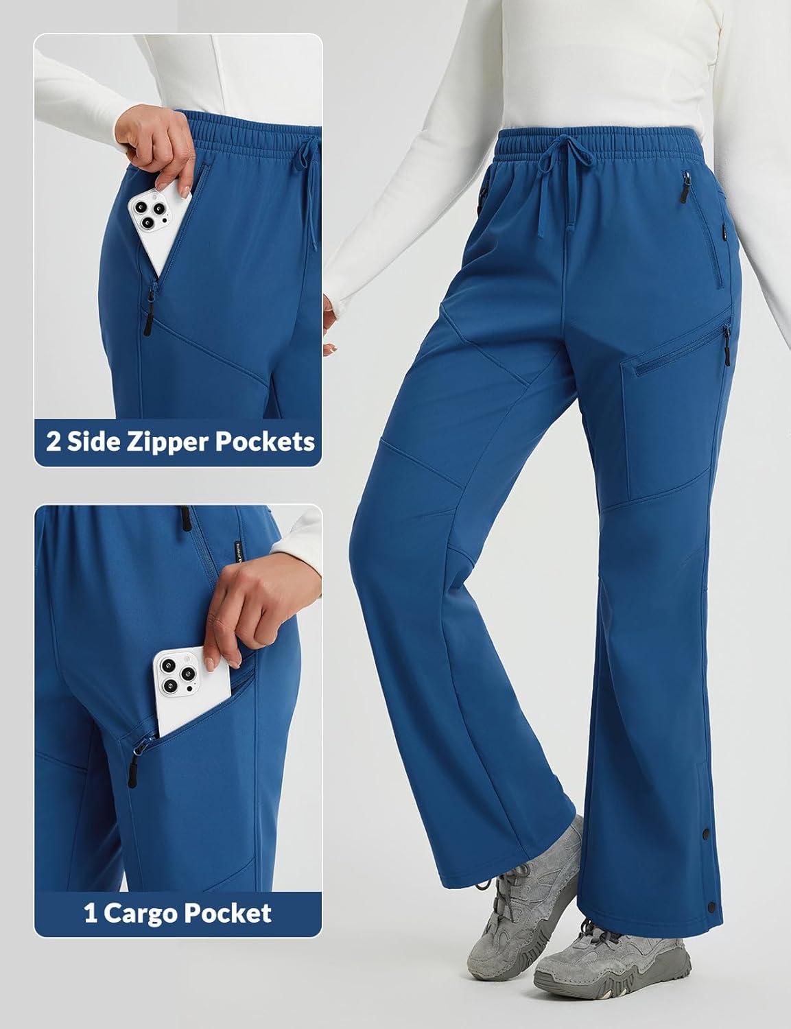 imagebaleaf Womens Waterproof Pants Hiking Snow Fleece Lined Pockets Thermal Warm Insulated Softshell SkiNavy Blue