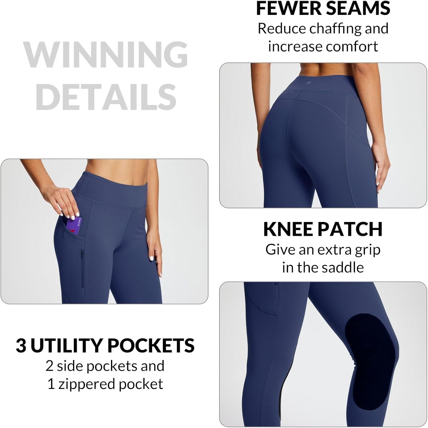 BALEAF Women's Winter Horse Riding Pants Fleece Breeches Knee-Patch Horseback Equestrian Tights Pockets Leggings