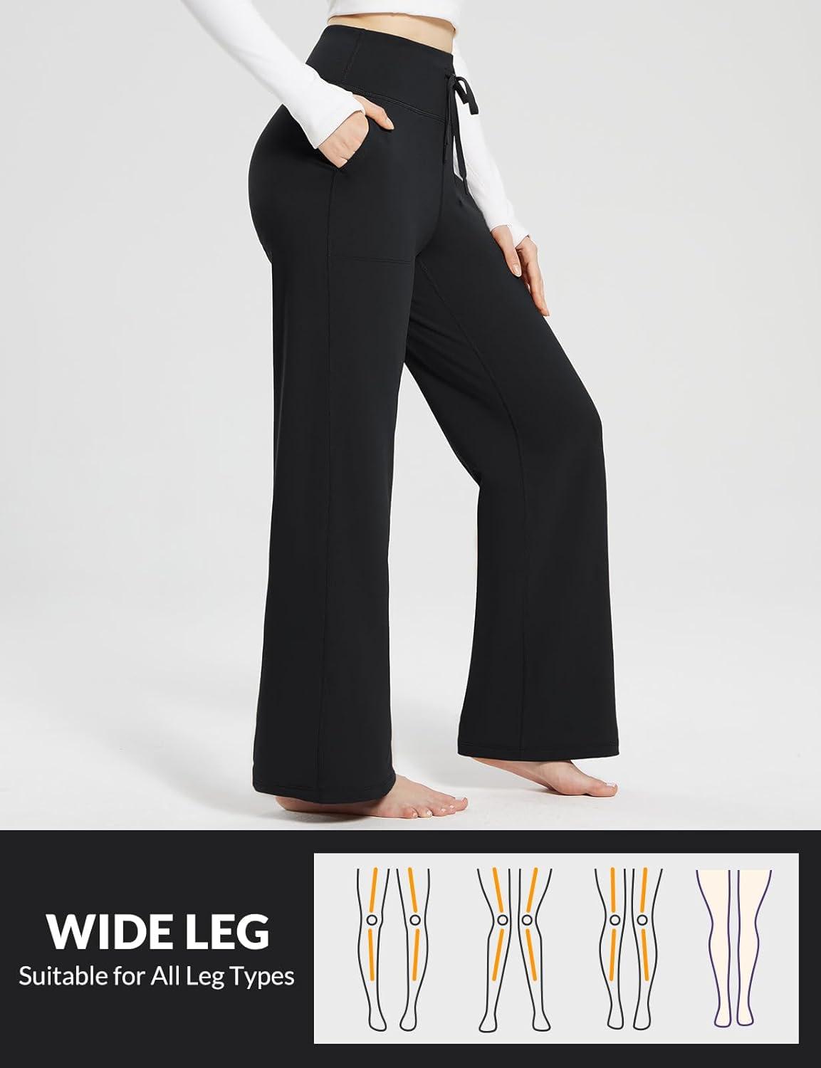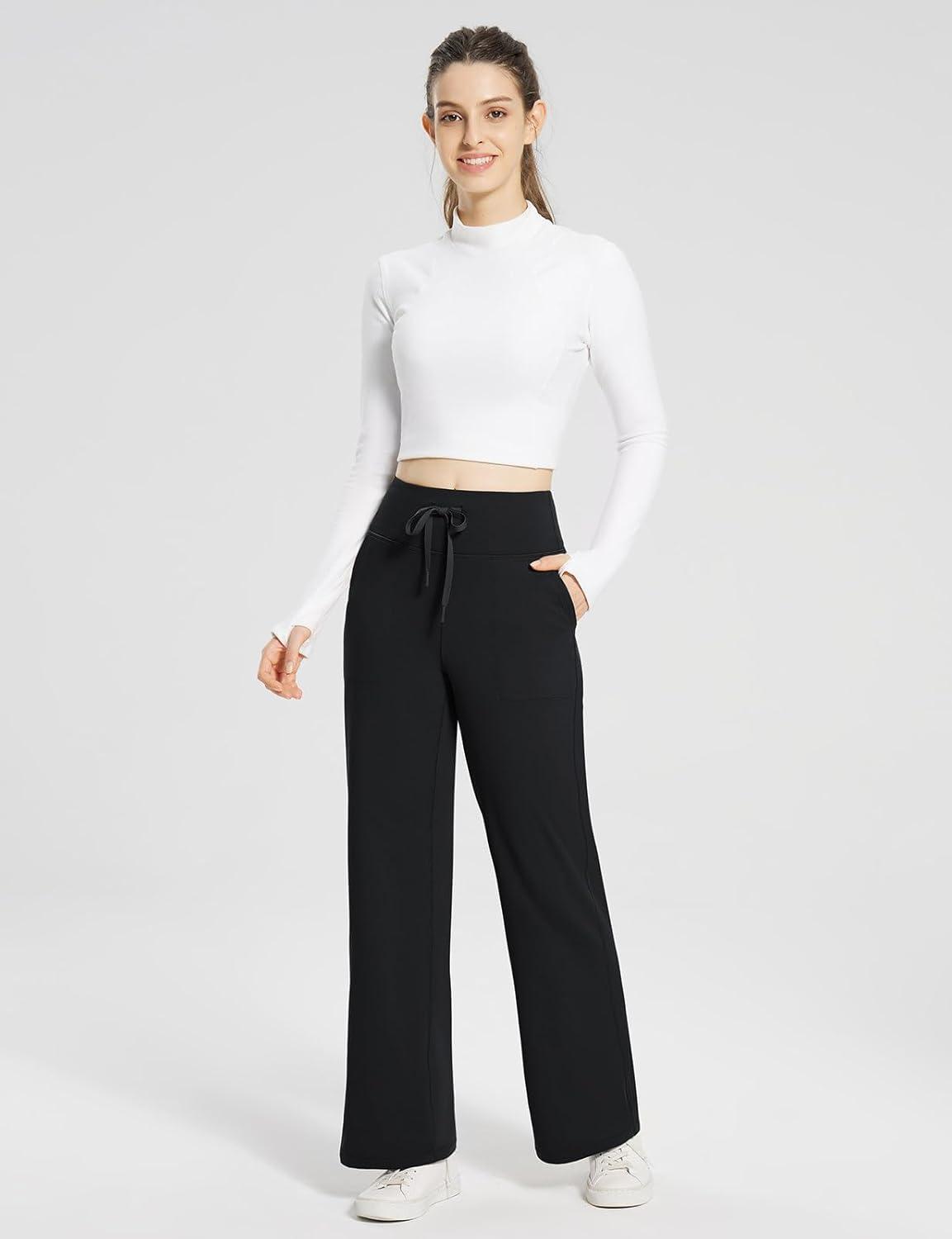 baleaf Womens Winter Pants Fleece Lined Wide Leg Sweatpants with Pockets Warm Yoga Lounge Drawstring(Black)