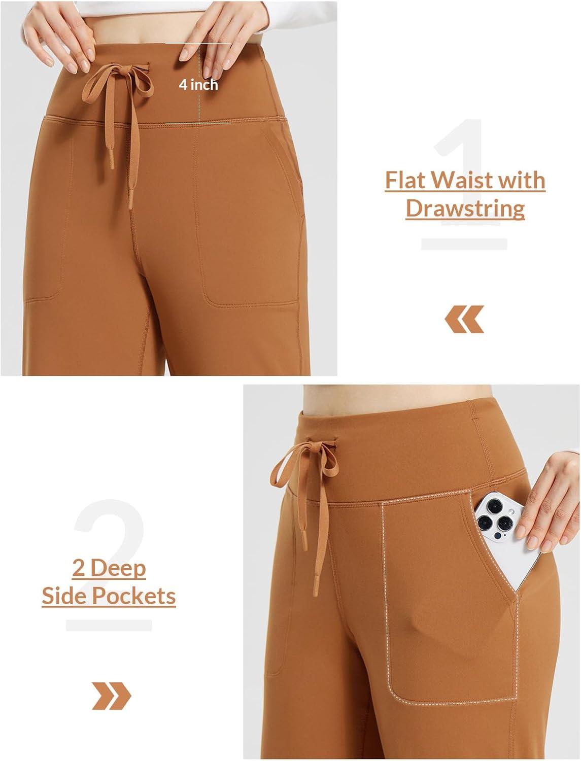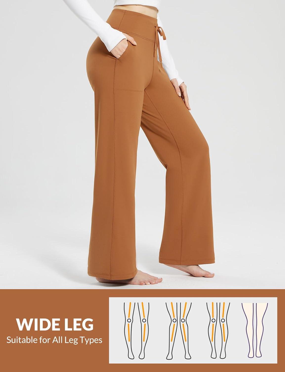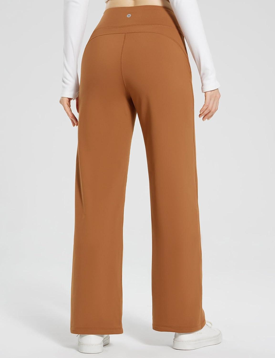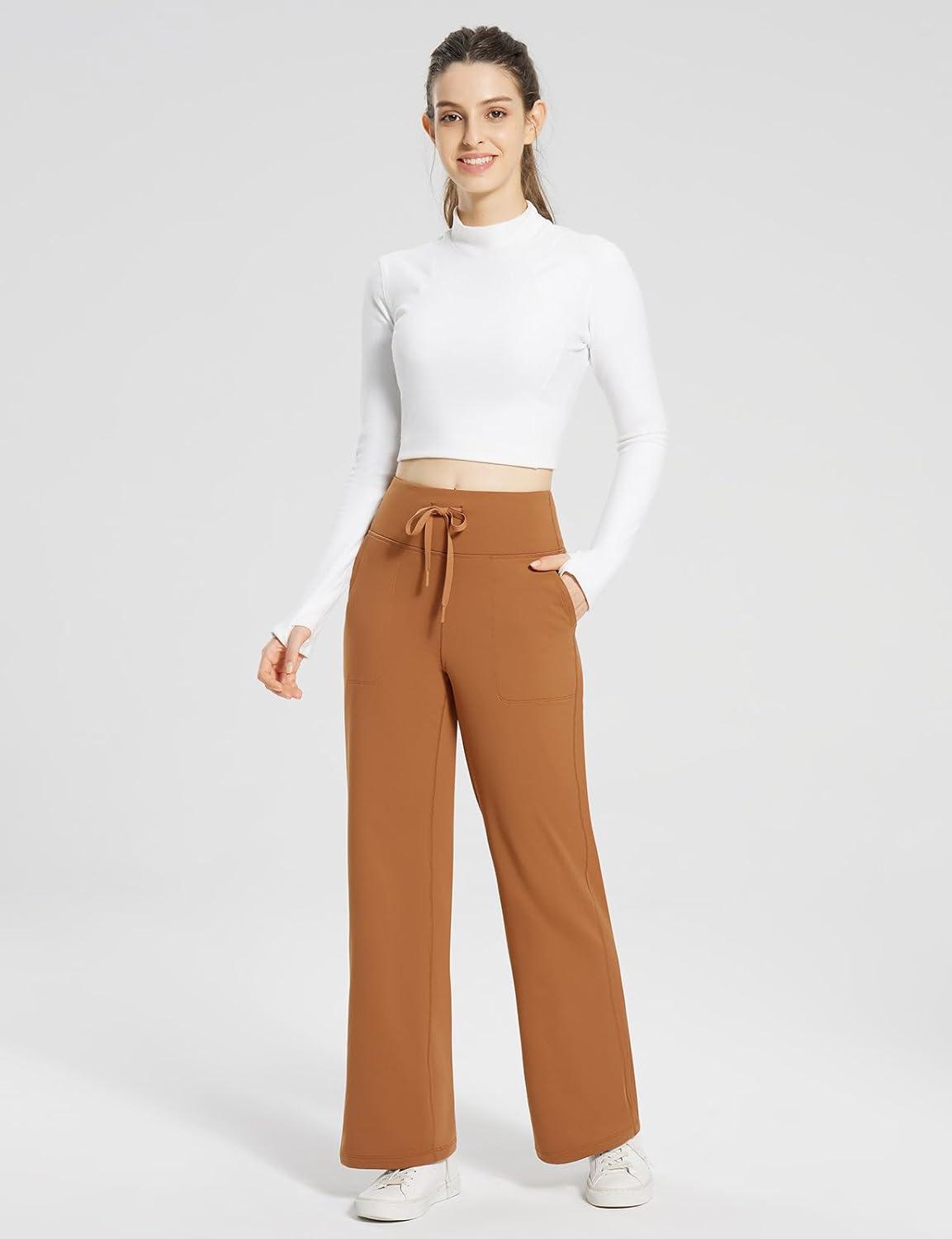 baleaf Womens Winter Pants Fleece Lined Wide Leg Sweatpants with Pockets Warm Yoga Lounge Drawstring(Caramel)