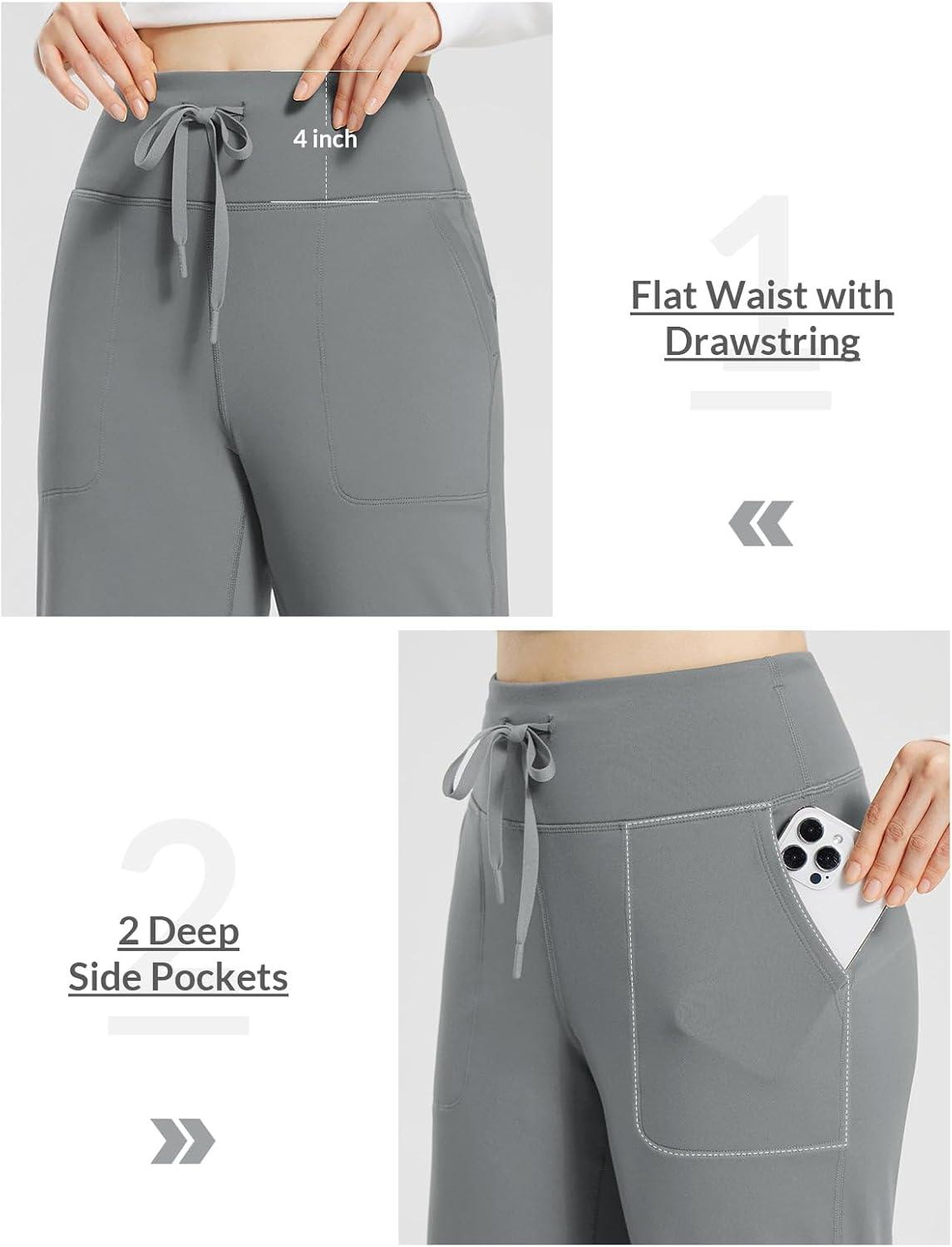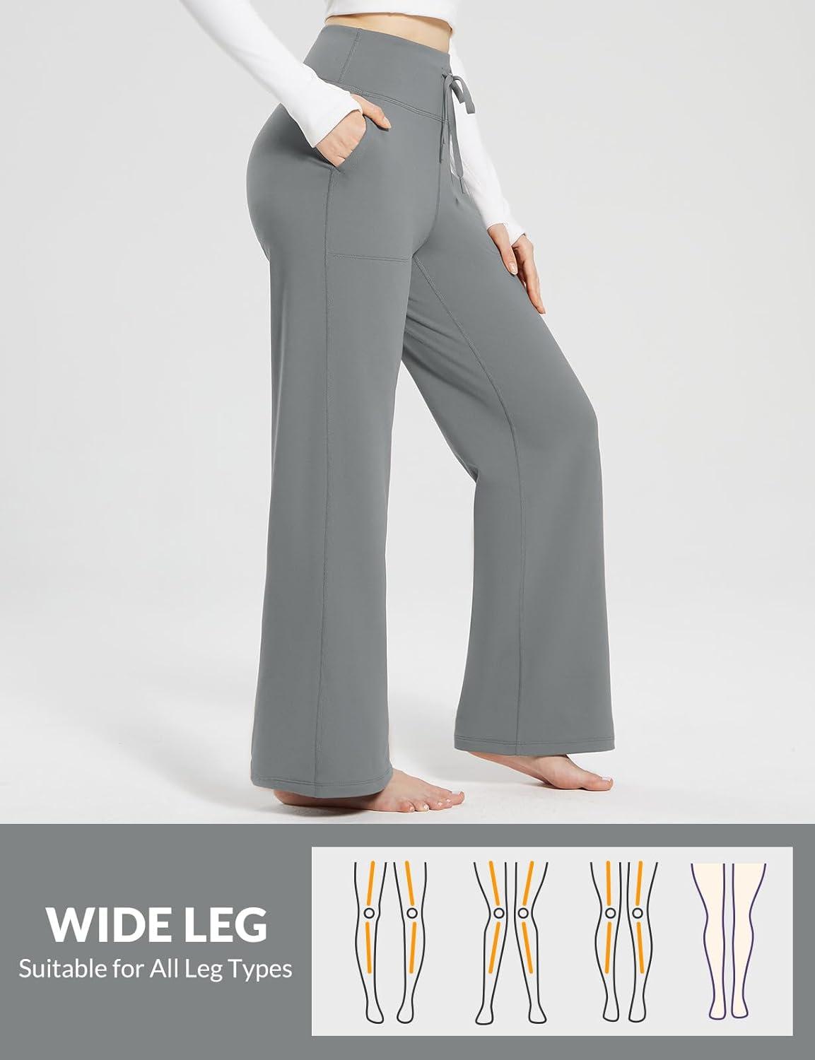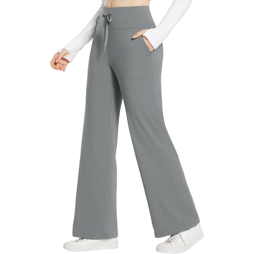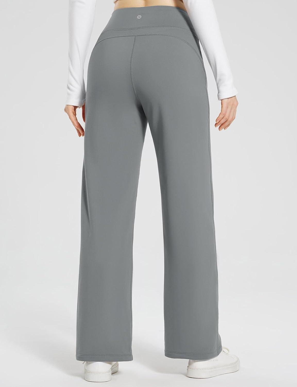 baleaf Womens Winter Pants Fleece Lined Wide Leg Sweatpants with Pockets Warm Yoga Lounge Drawstring(Grey)