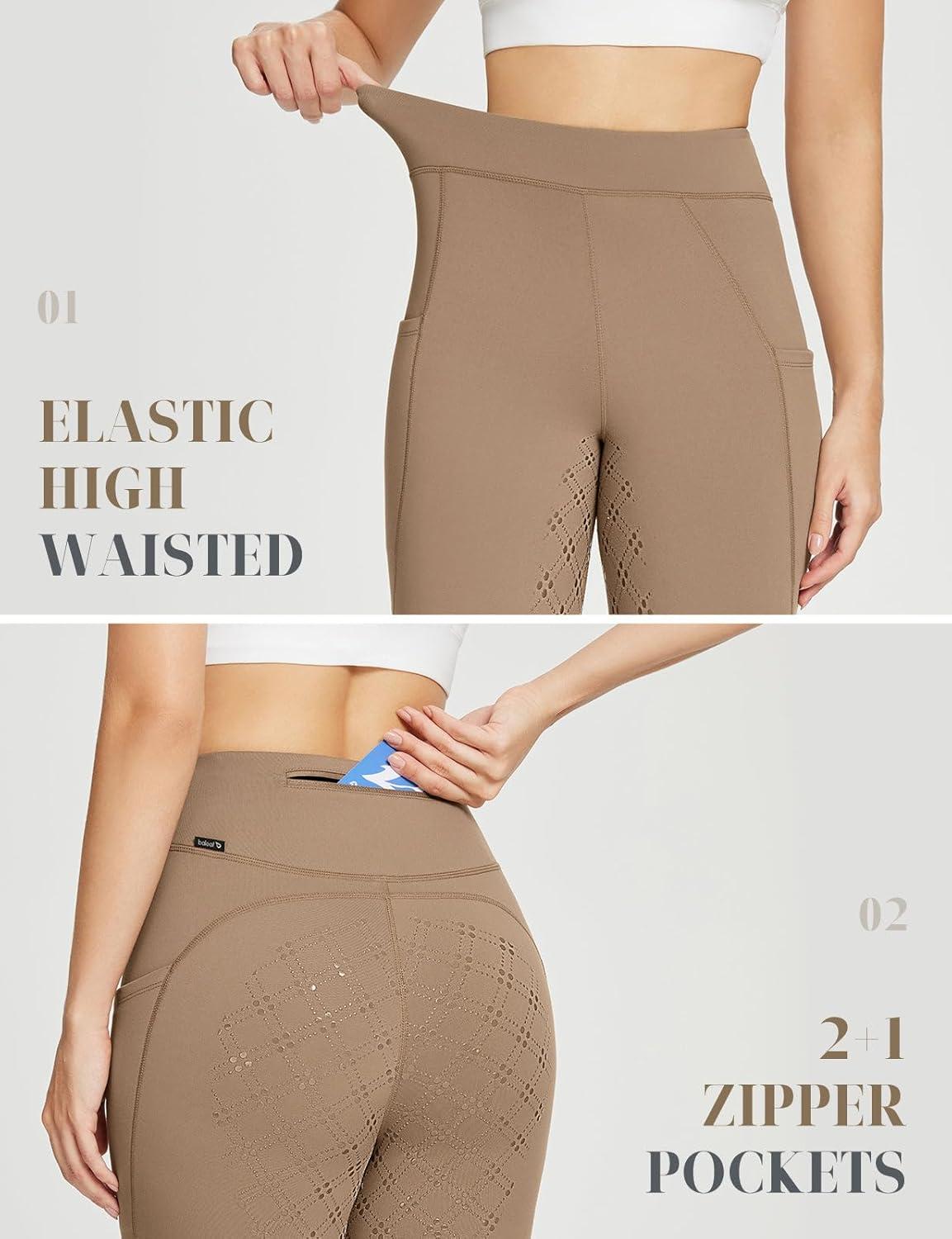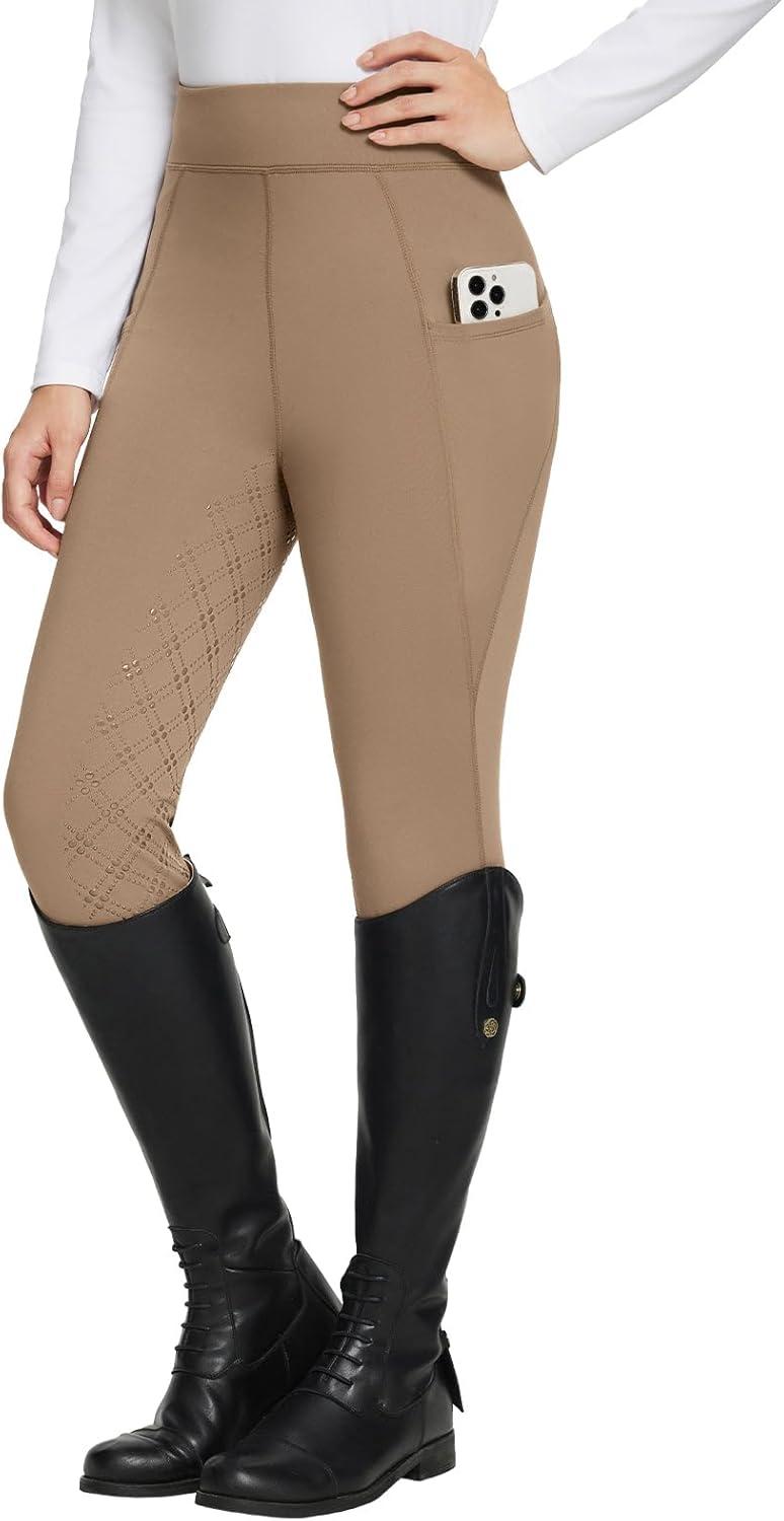 baleaf Women’s Winter Riding Pants Full Seat Breeches Fleece Horse Equestrian Tights Horseback Leggings Zipper Pockets(Brown-b)