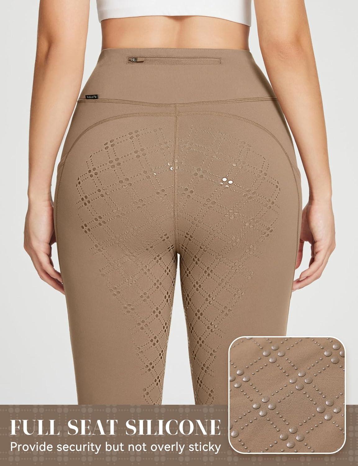 baleaf Women's Winter Riding Pants Full Seat Breeches Fleece Horse Equestrian Tights Horseback Leggings Zipper Pockets(Brown-b)