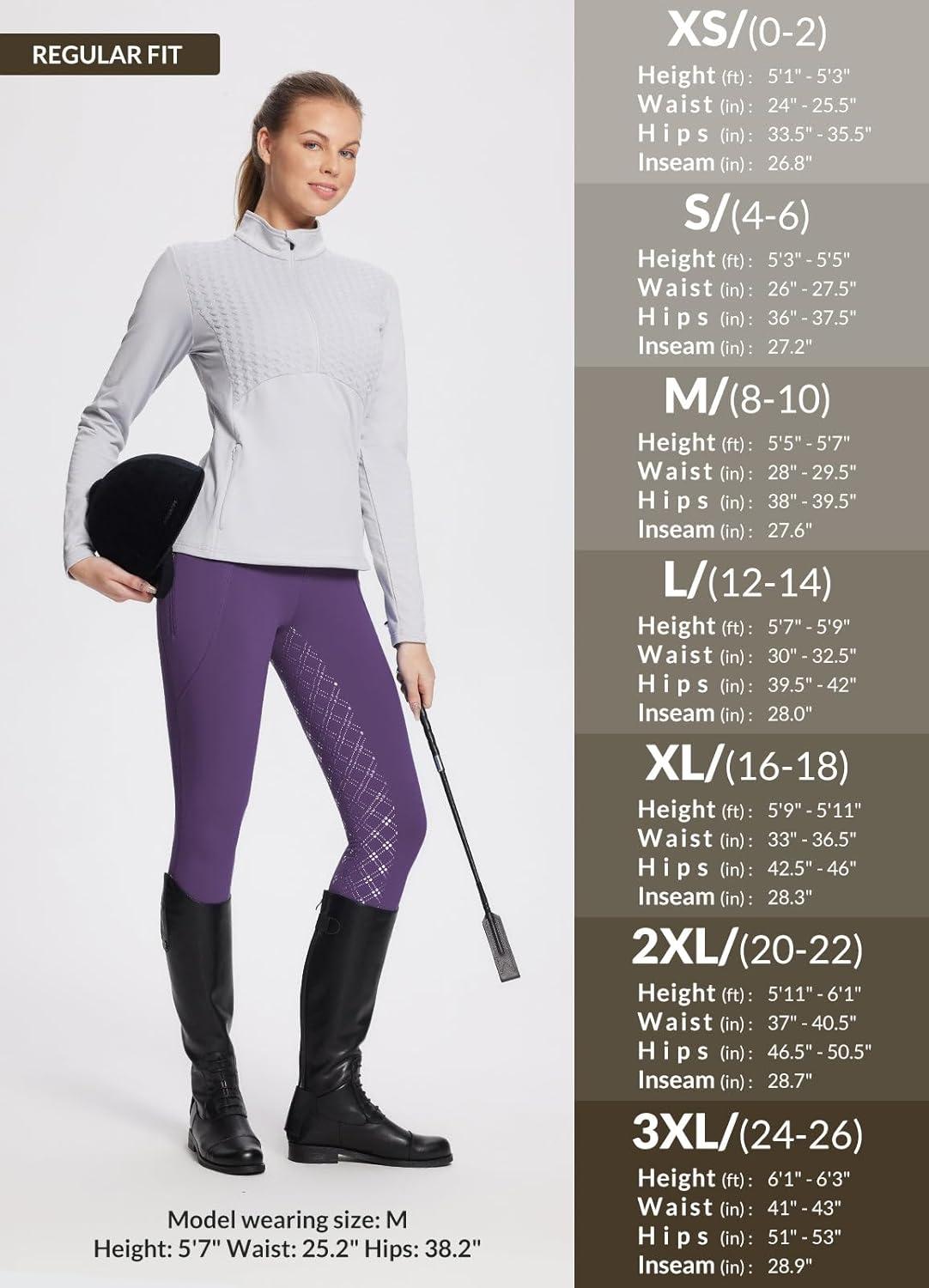 imagebaleaf Womens Winter Riding Pants Full Seat Breeches Fleece Horse Equestrian Tights Horseback Leggings Zipper PocketsPurple