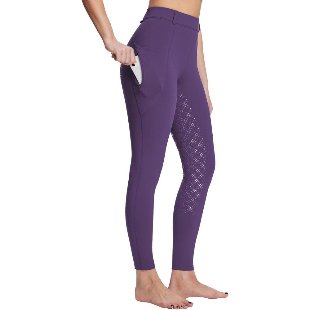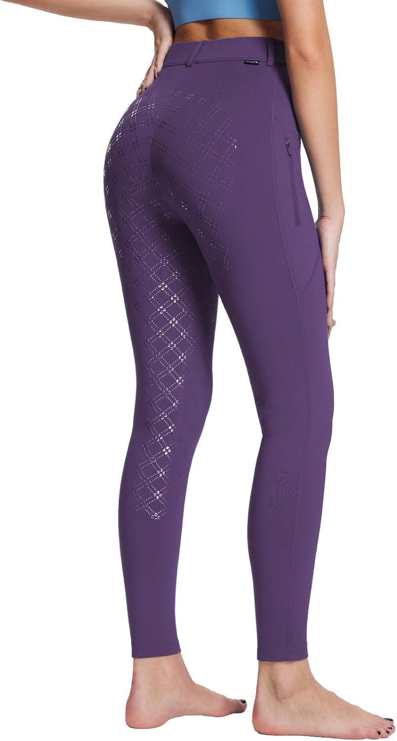 baleaf Women’s Winter Riding Pants Full Seat Breeches Fleece Horse Equestrian Tights Horseback Leggings Zipper Pockets(Purple)