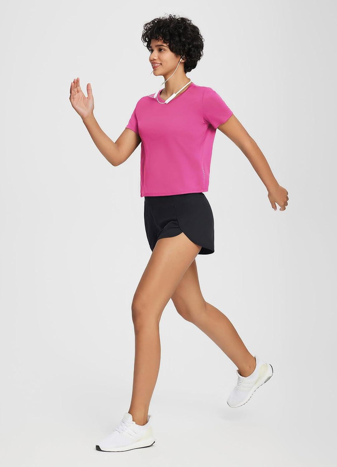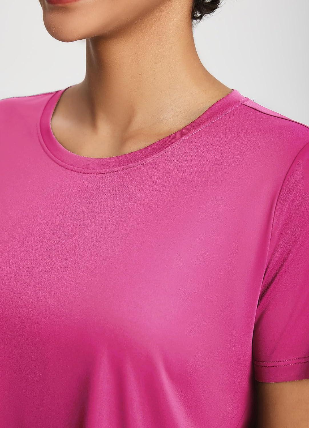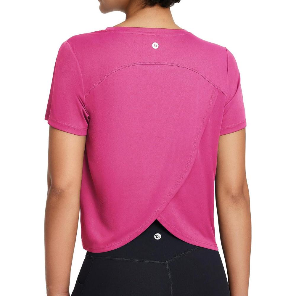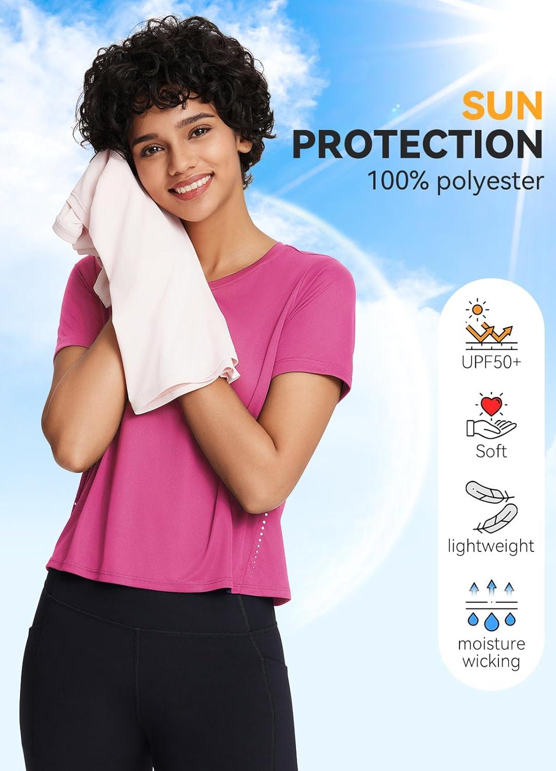 baleaf Women’s Workout Tops Athletic Shirts Cropped Short Sleeve Split Back Running Gym Quick Dry Sun Protection UPF 50+(Rose Red)