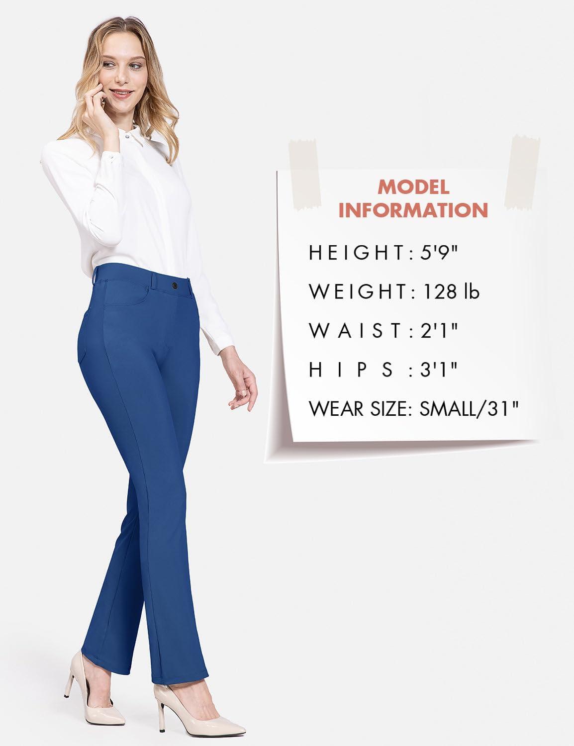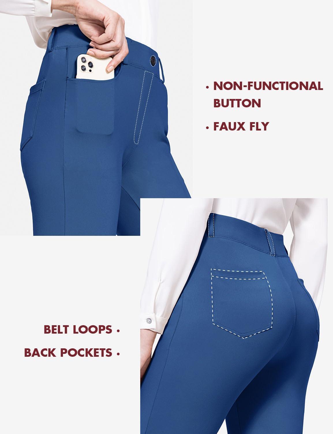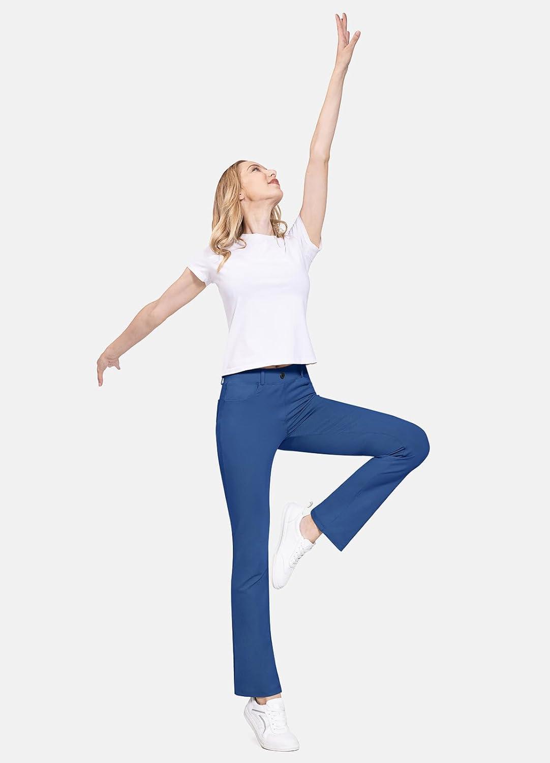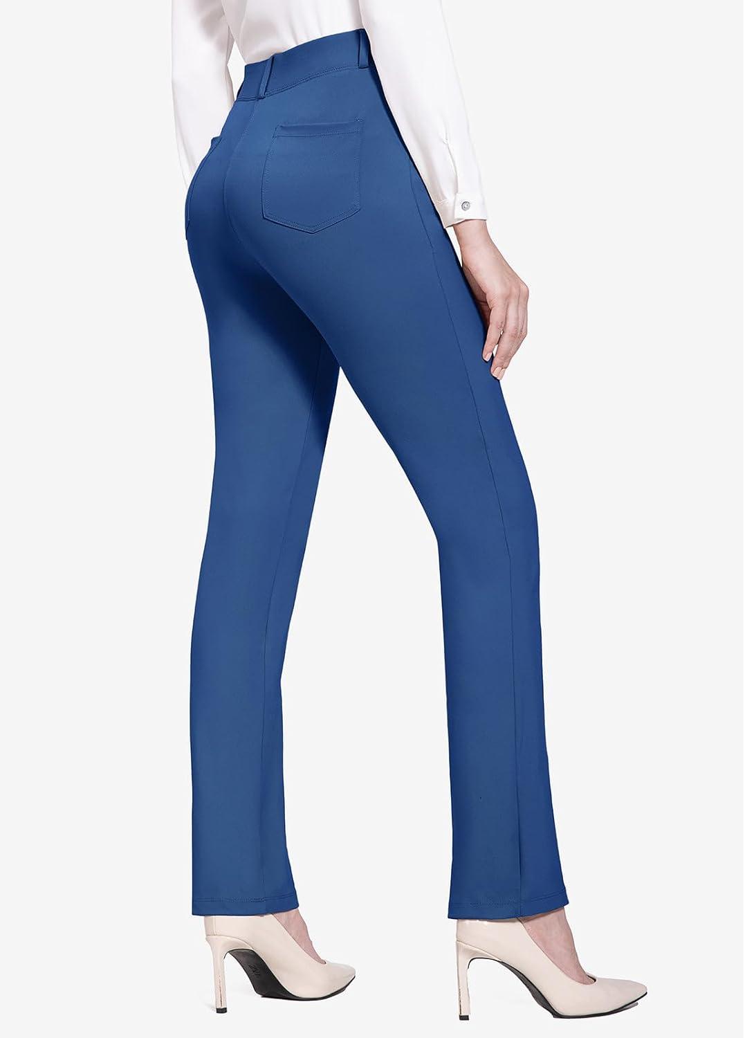 baleaf Women's Yoga Dress Pants Stretchy Work Slacks Business Casual Straight Leg/Bootcut Pull on Trousers w 4 Pockets(Blue)