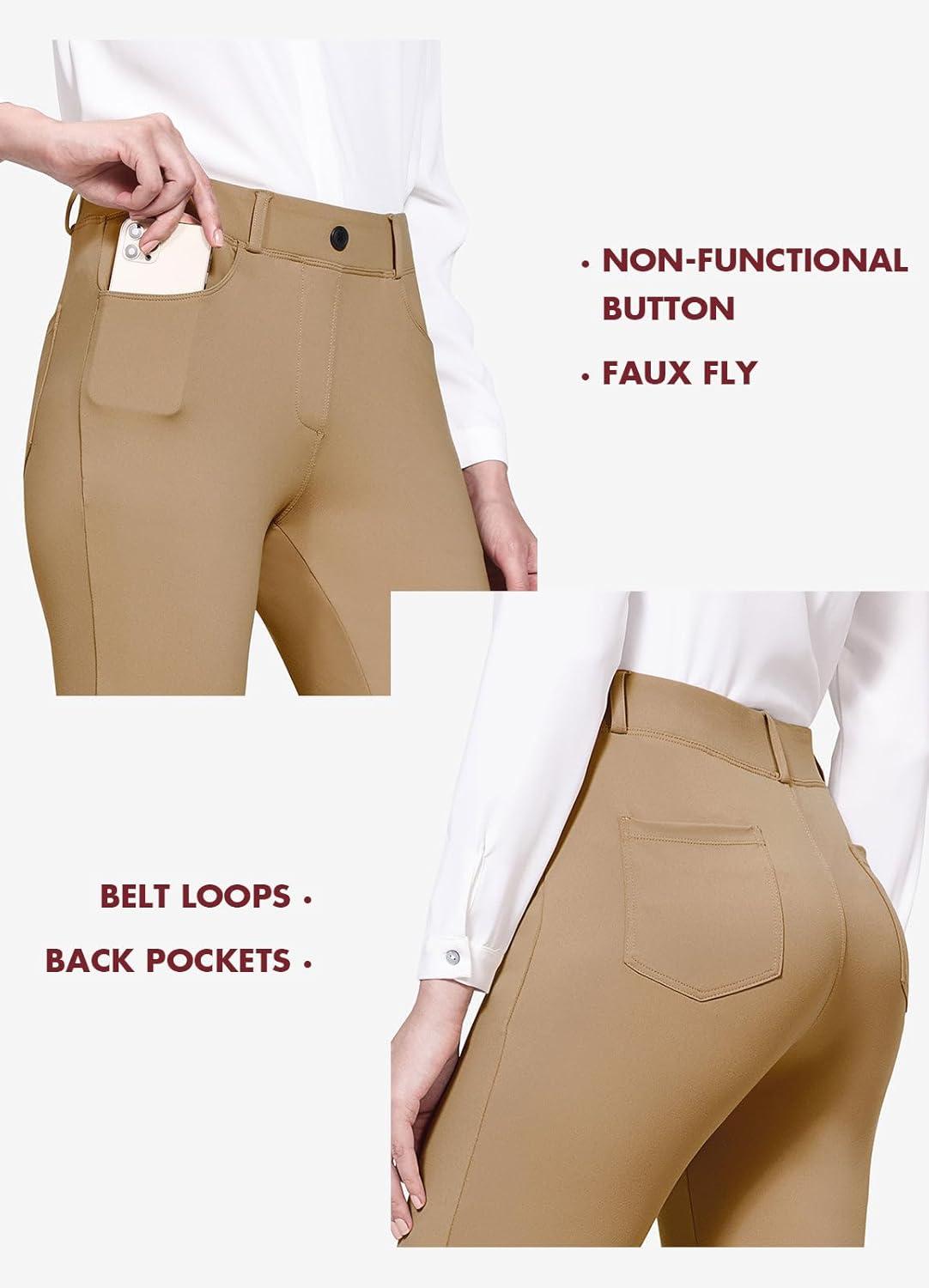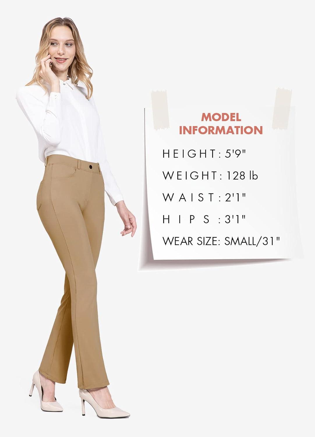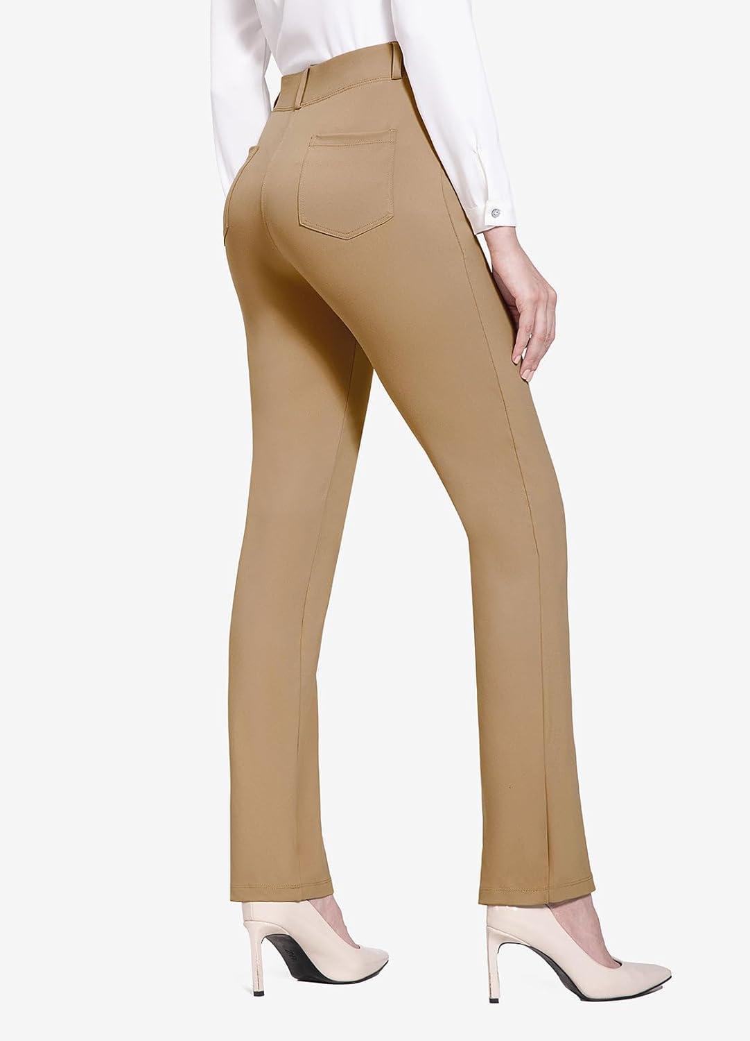 baleaf Women's Yoga Dress Pants Stretchy Work Slacks Business Casual Straight Leg/Bootcut Pull on Trousers w 4 Pockets(Coco Creme)