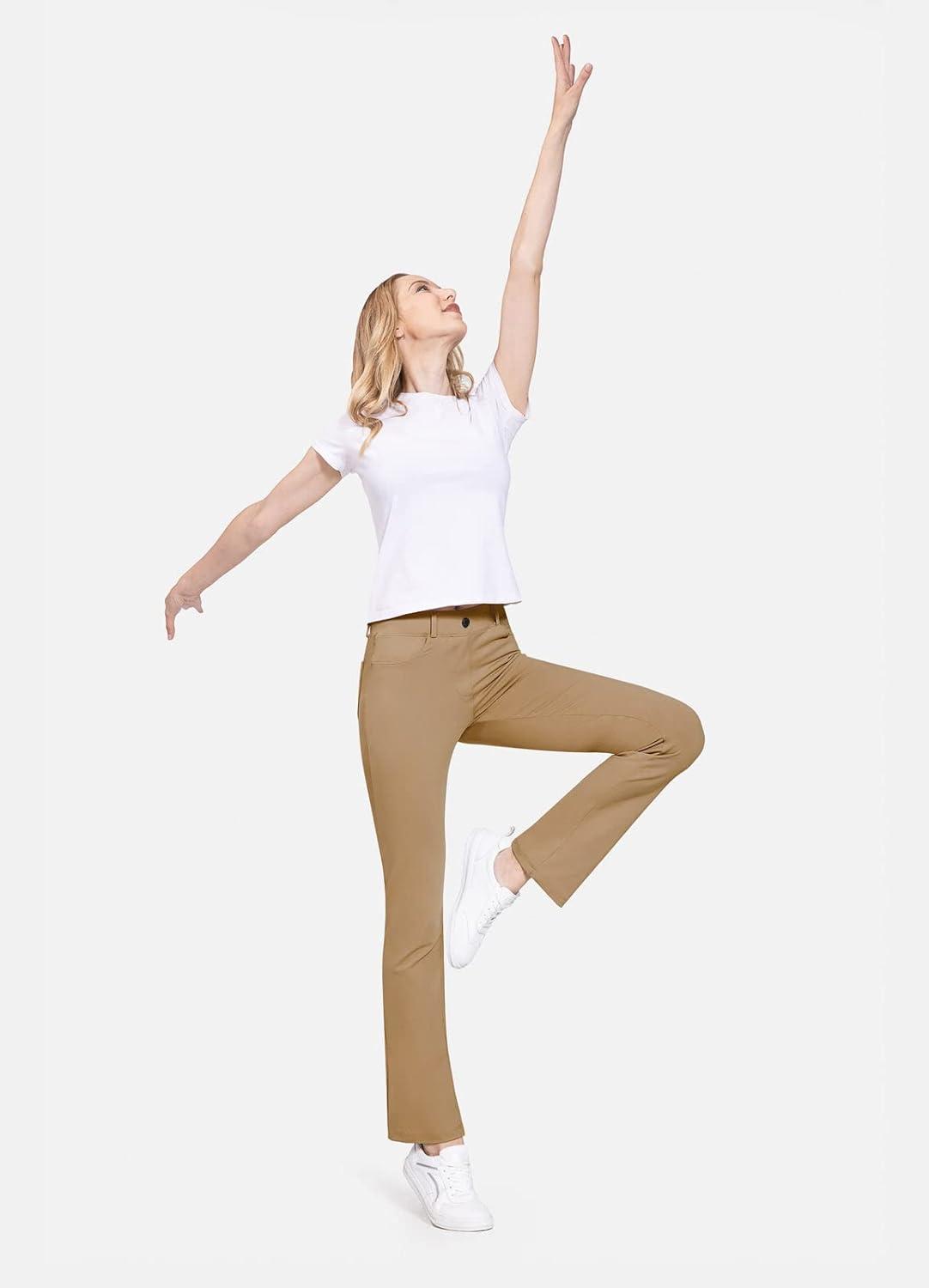 baleaf Women’s Yoga Dress Pants Stretchy Work Slacks Business Casual Straight Leg/Bootcut Pull on Trousers w 4 Pockets(Coco Creme)