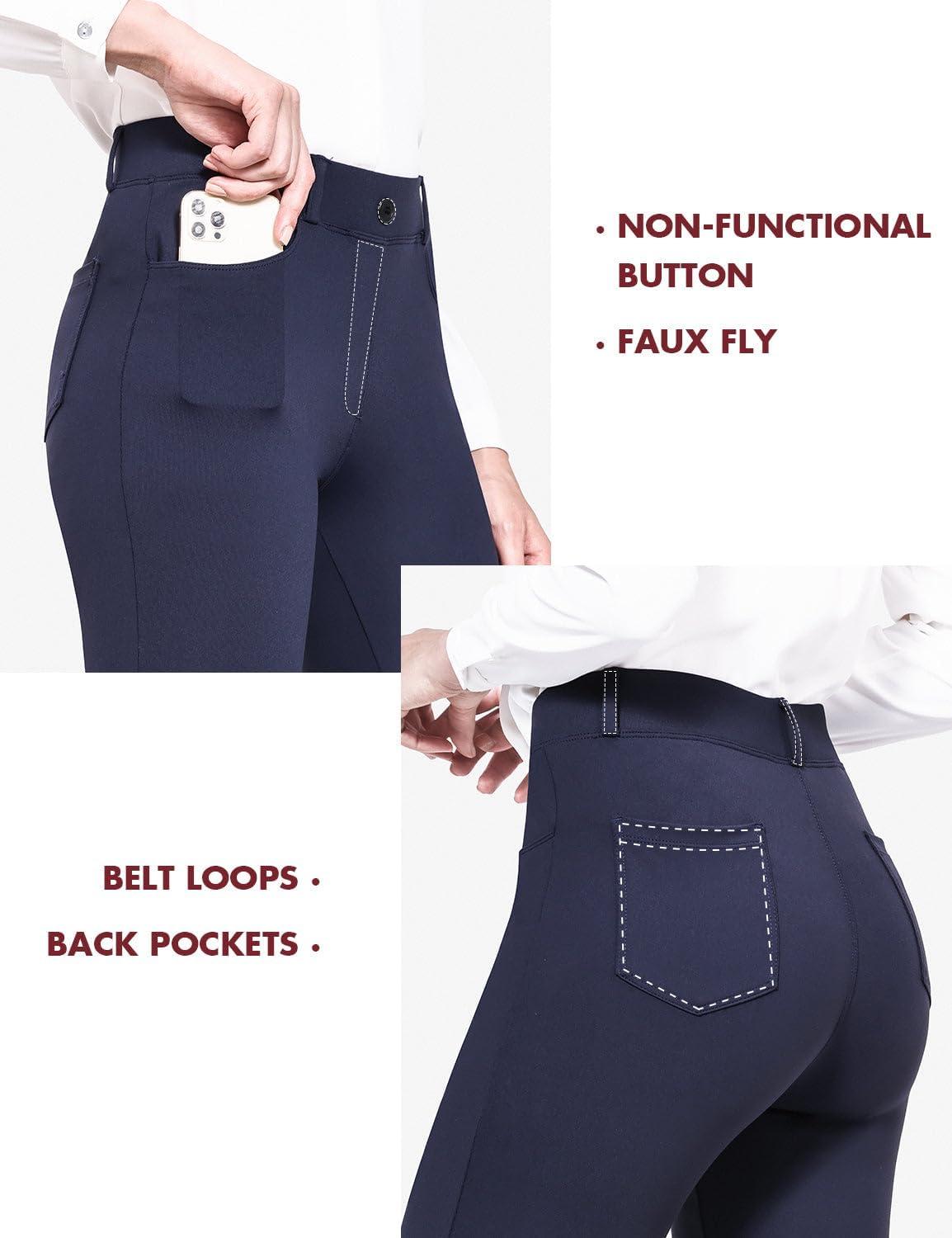 imagebaleaf Womens Yoga Dress Pants Stretchy Work Slacks Business Casual Straight LegBootcut Pull on Trousers w 4 PocketsNavy Blue