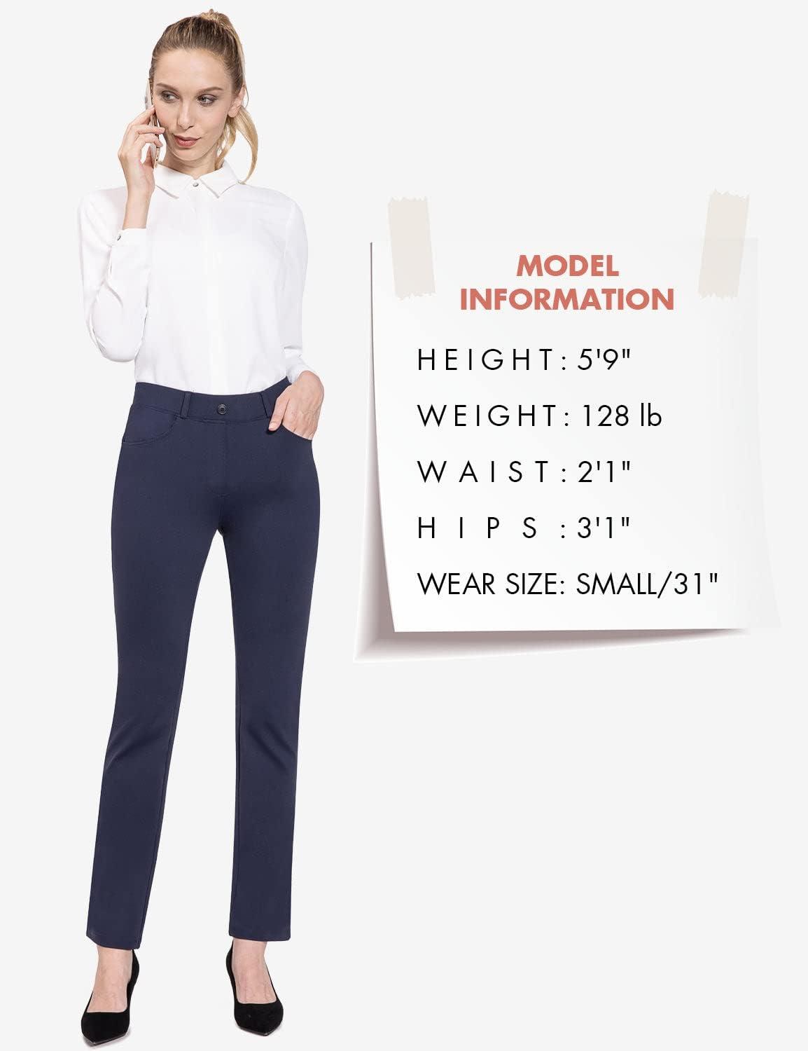 baleaf Women's Yoga Dress Pants Stretchy Work Slacks Business Casual Straight Leg/Bootcut Pull on Trousers w 4 Pockets(Navy Blue)