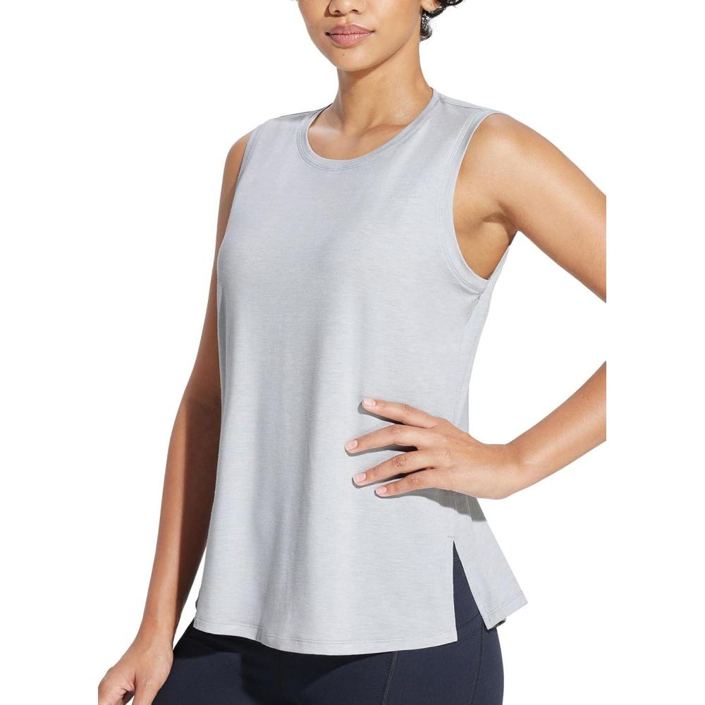 baleaf Workout Tank Tops for Women Sleeveless Athletic Top Loose Fit Running Shirts High Neck Yoga Gym Clothes(Grey)