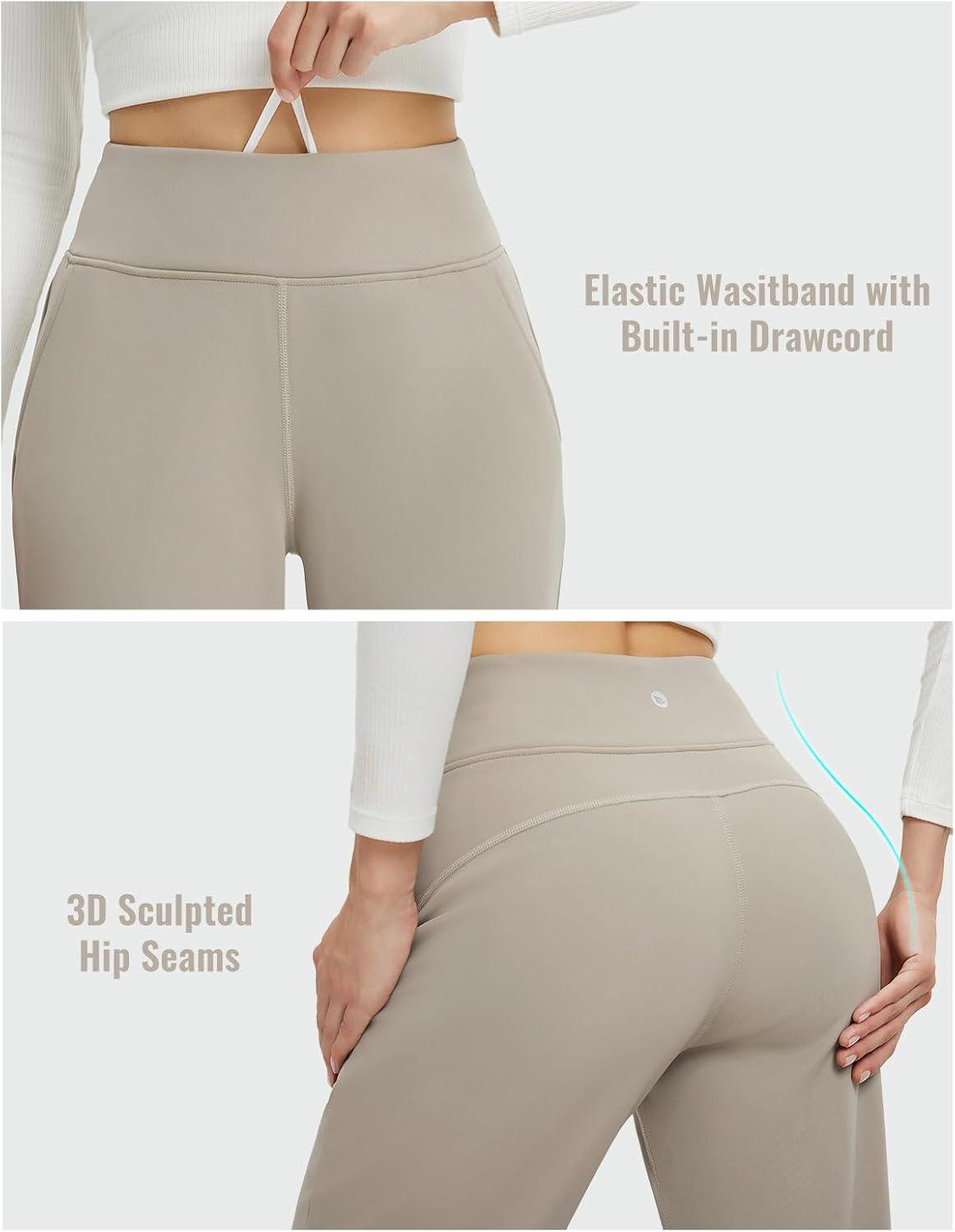 imagebaleaf Womens Fleece Lined Pants Winter Thermal Water Resistant Crossover Flare Leggings Warm Bootcut Hiking OutdoorArmy Green