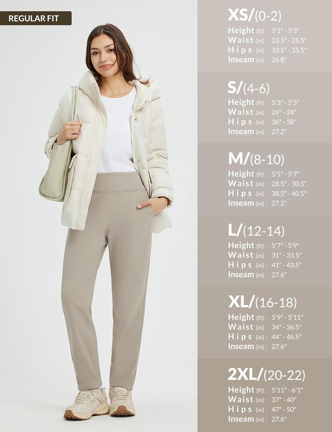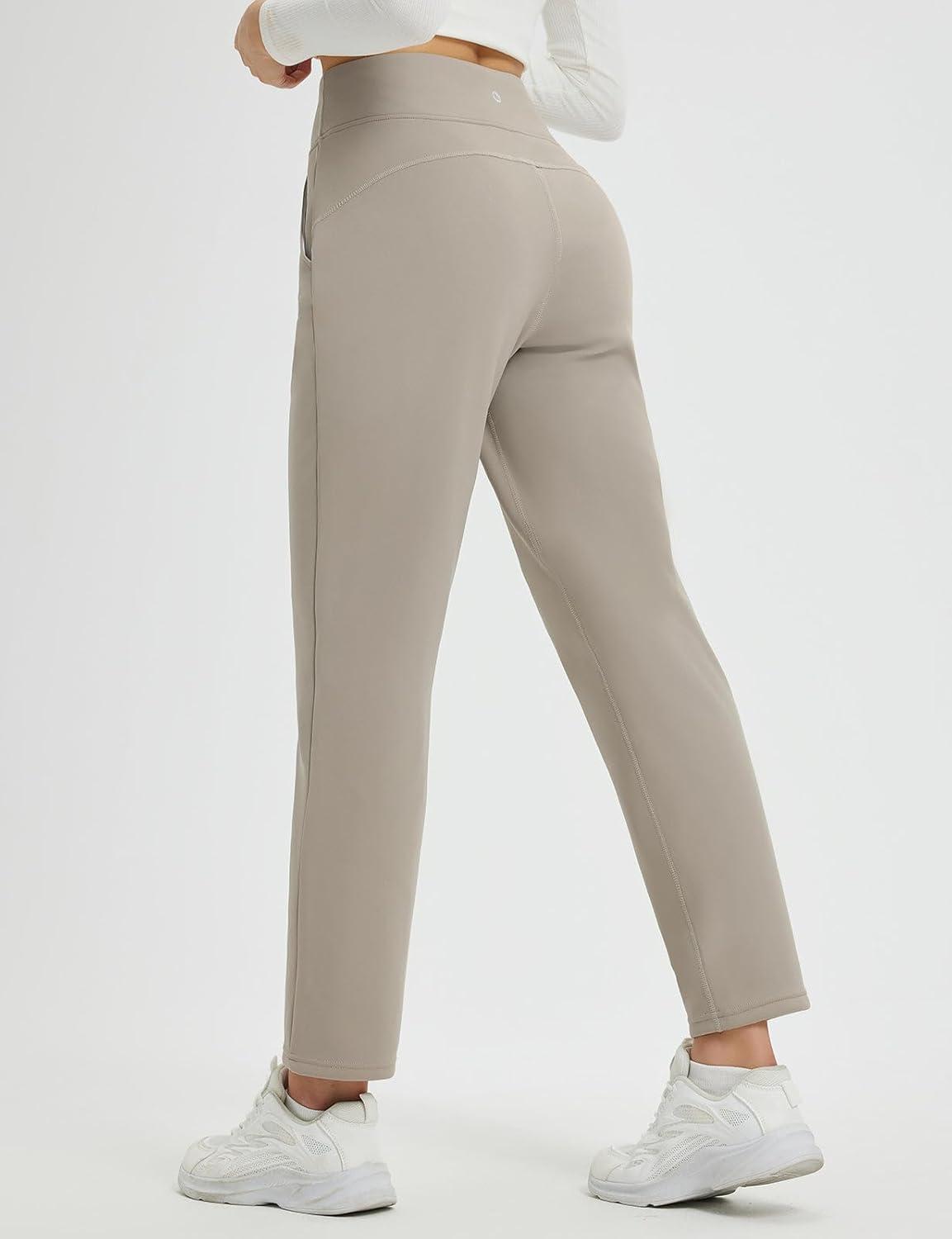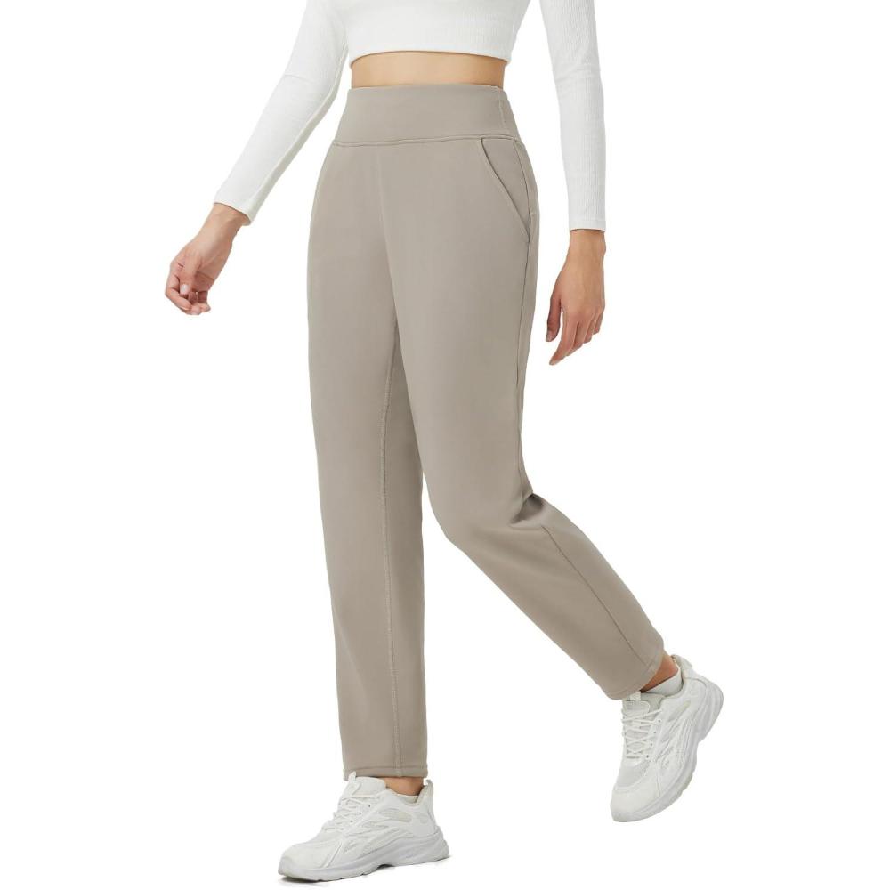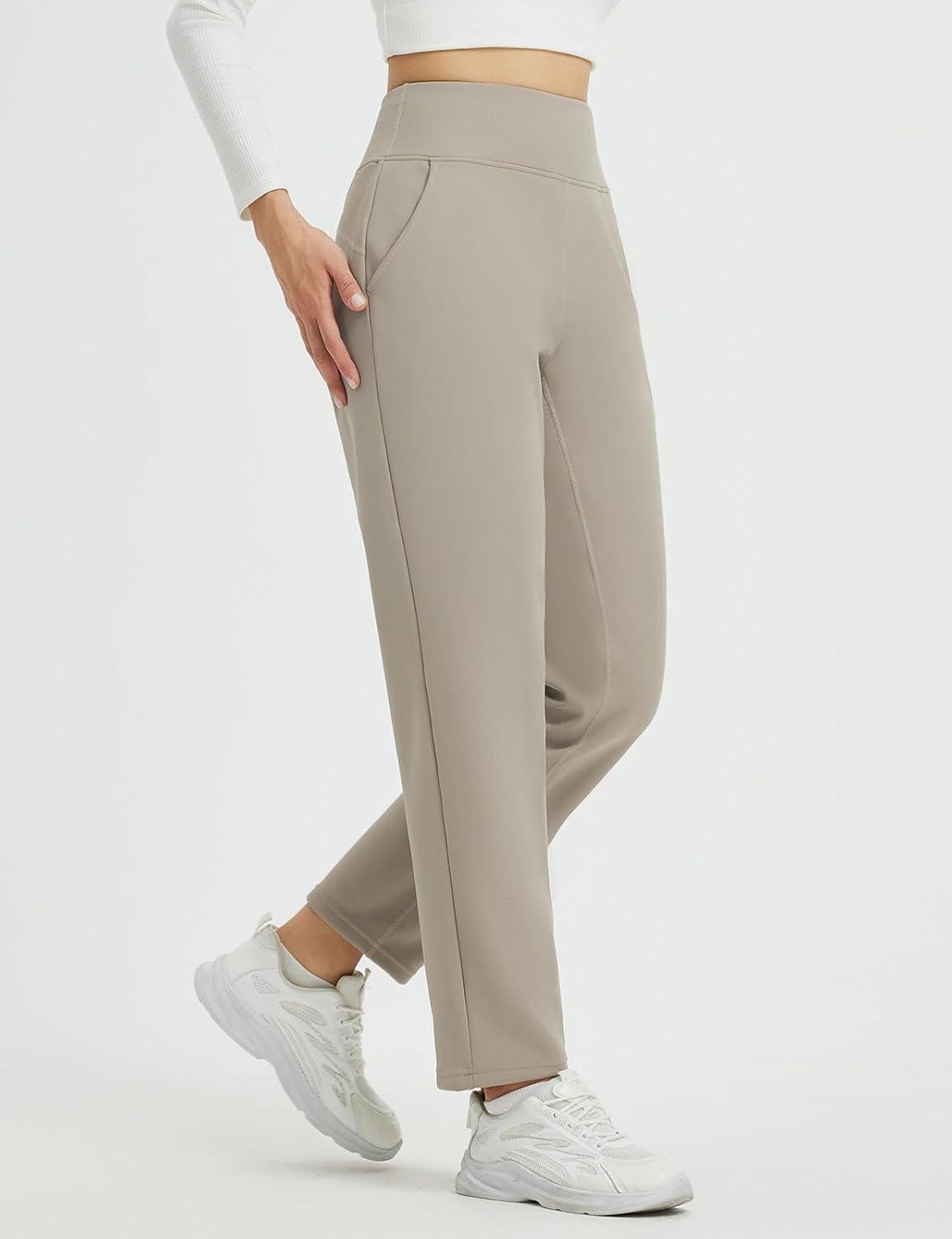 beleaf Women’s Fleece Lined Pants Winter Warm Thermal Water Resistant High Waisted Travel Pants Thick Pants Work Golf Casual(Khaki)